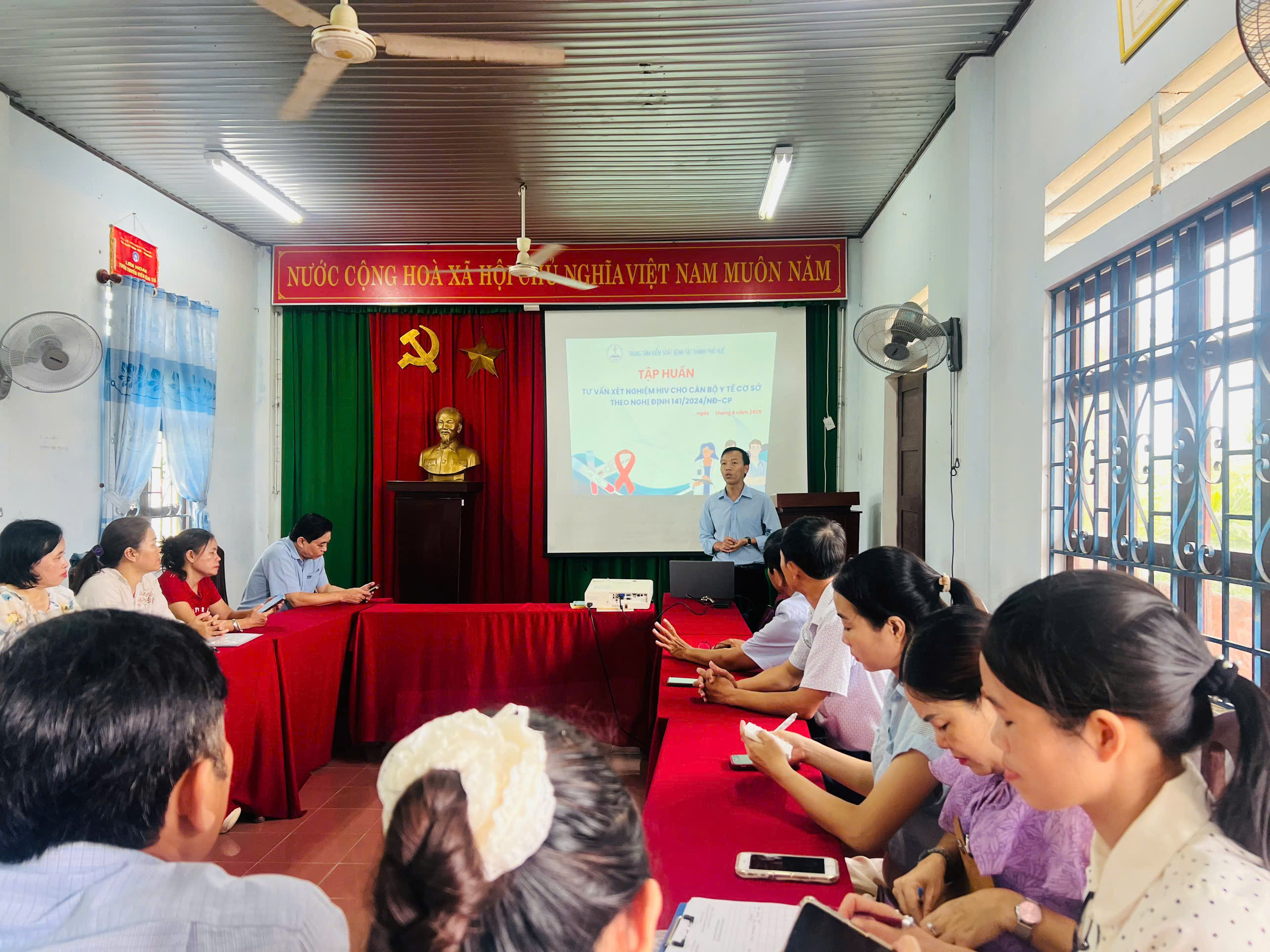 Nhằm nâng cao chất lượng công tác phòng, chống HIV/AIDS tại tuyến y tế cơ sở, trong tháng 8 năm 2025, Trung tâm Kiểm soát bệnh tật thành phố Huế đã tổ chức các lớp tập huấn “Tư vấn và xét nghiệm HIV” cho đội ngũ cán bộ y tế đang công tác tại các trạm y tế xã, phường, thị trấn thuộc Trung tâm Y tế Phú Lộc, Hương Thủy và Quảng Điền.