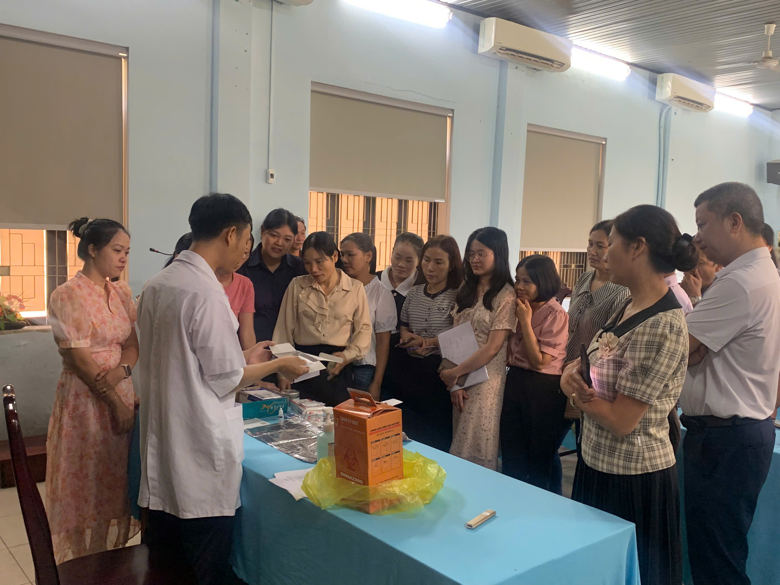 Trong quá trình cung cấp kiến thức liên quan đến khái niệm, kĩ năng xét nghiệm HIV, tư vấn trước và sau xét nghiệm HIV, các cán bộ y tế còn được giới thiệu kĩ thuật xét nghiệm HIV và được trực tiếp thực hành kĩ thuật xét nghiệm HIV/giang mai bởi giảng viên của Khoa XN-CĐHA-TDCN của Trung tâm Kiểm soát bệnh tật.