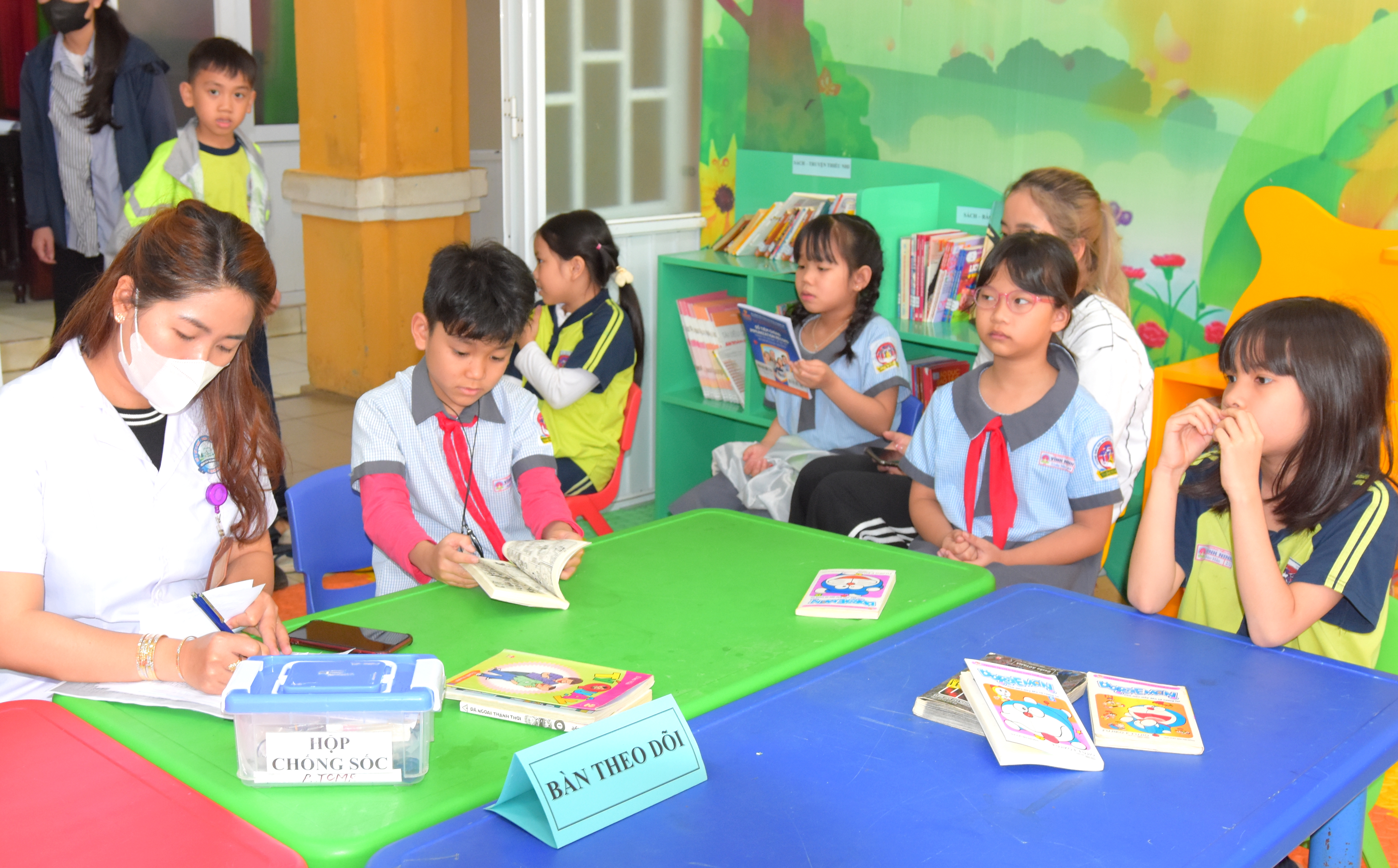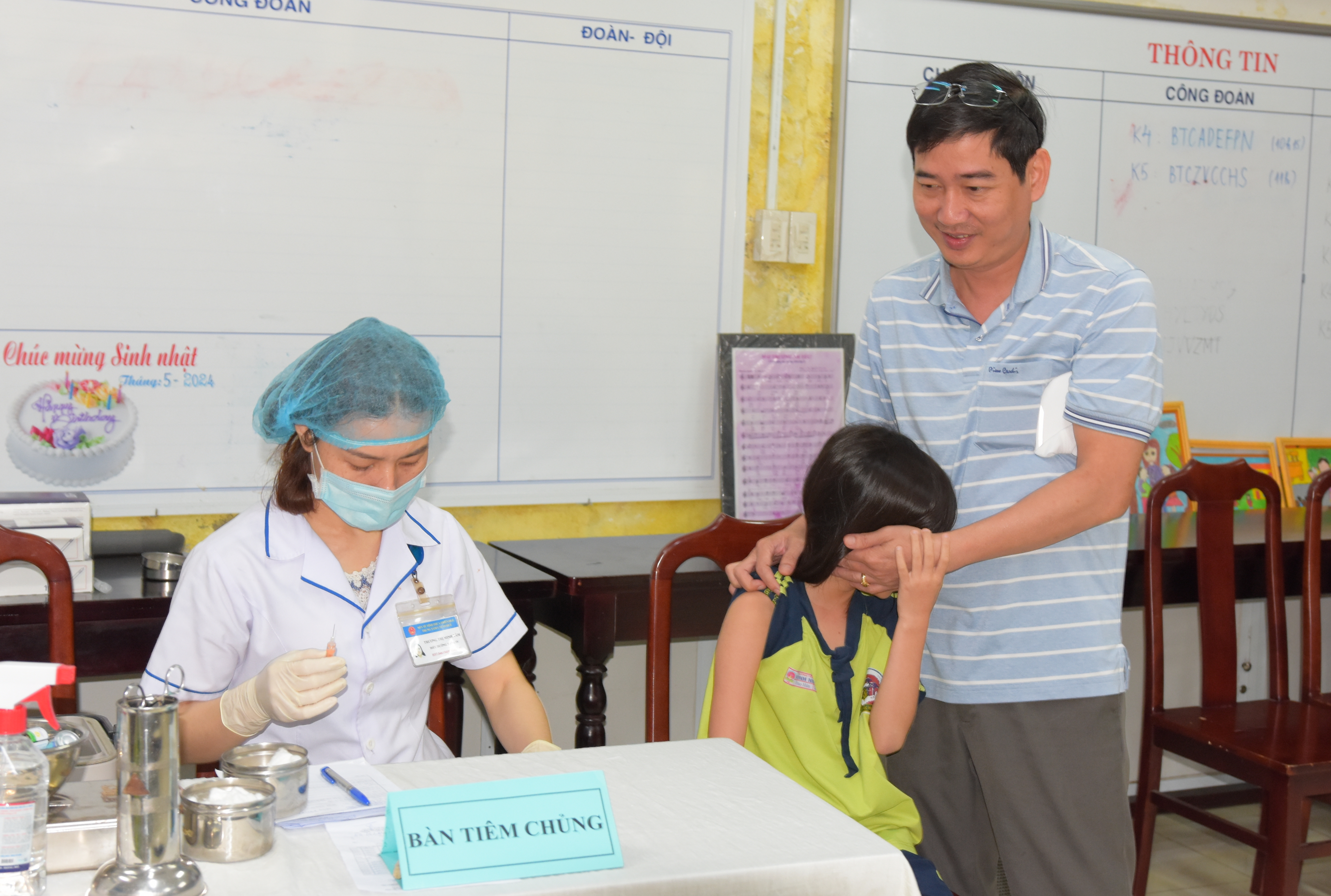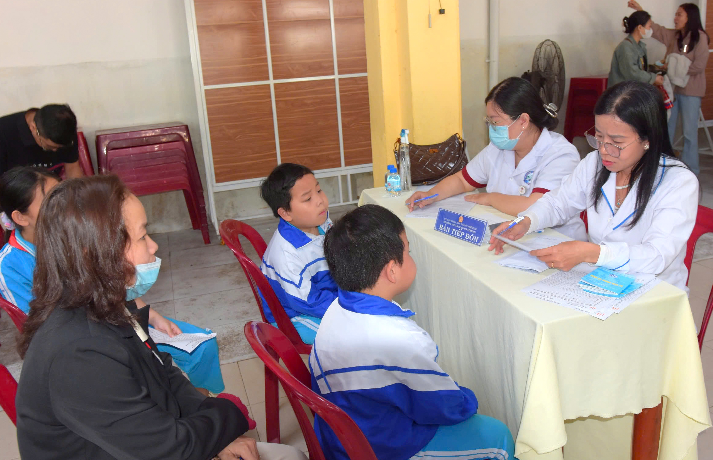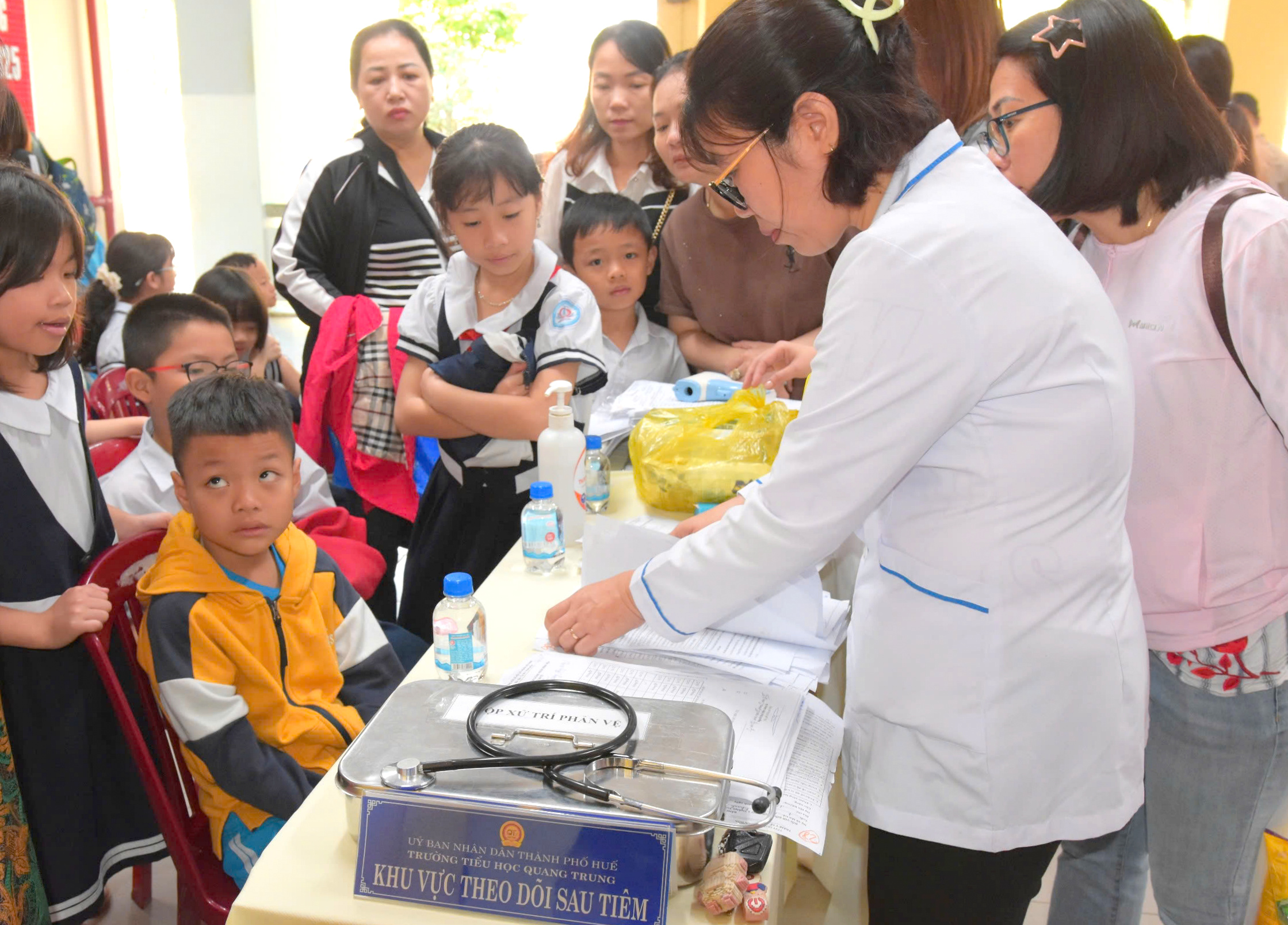 Điểm tiêm phòng vắc xin Sởi tại trường Tiểu học Quang Trung, phường Phú Nhuận, quận Thuận Hóa.