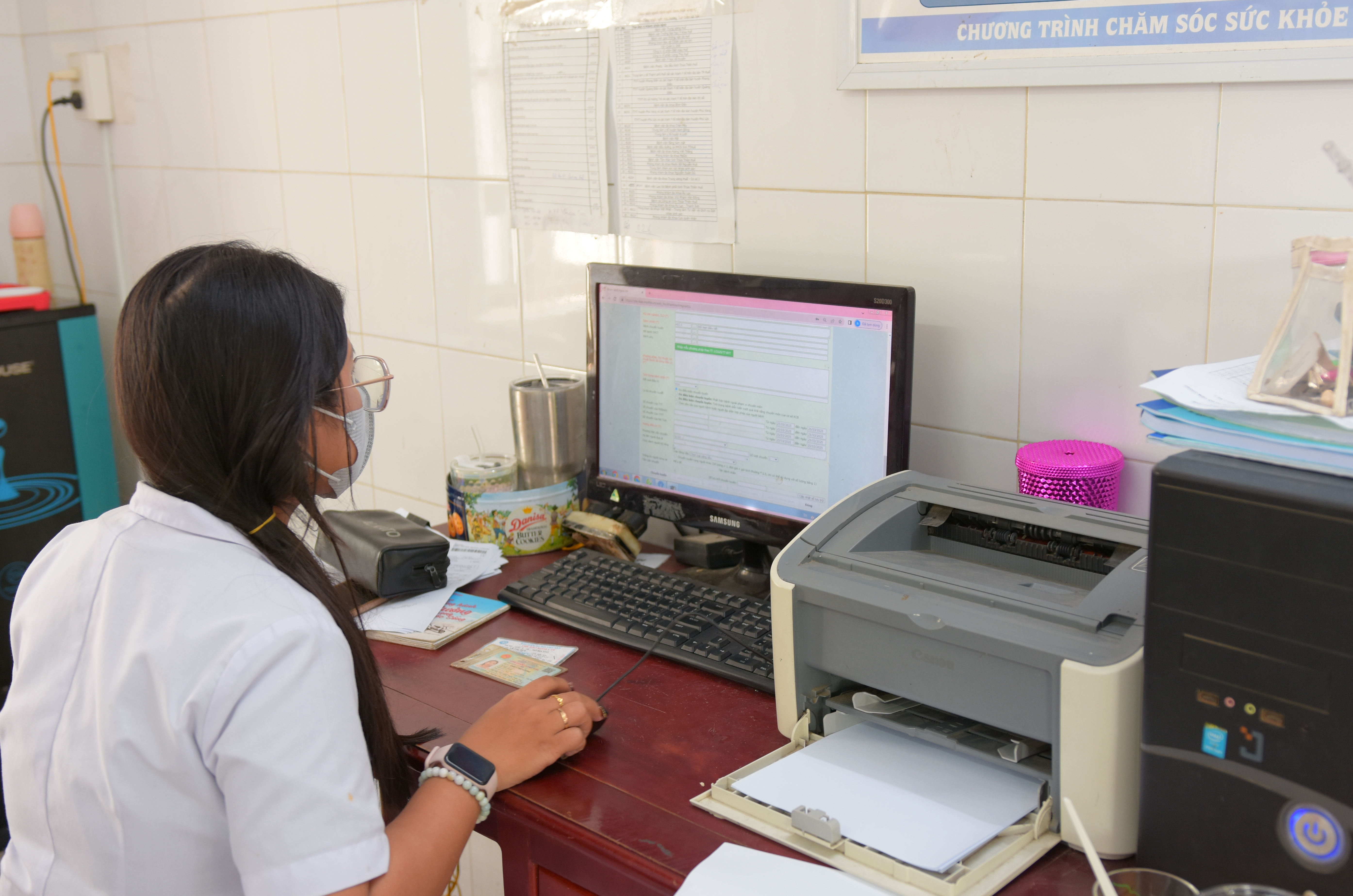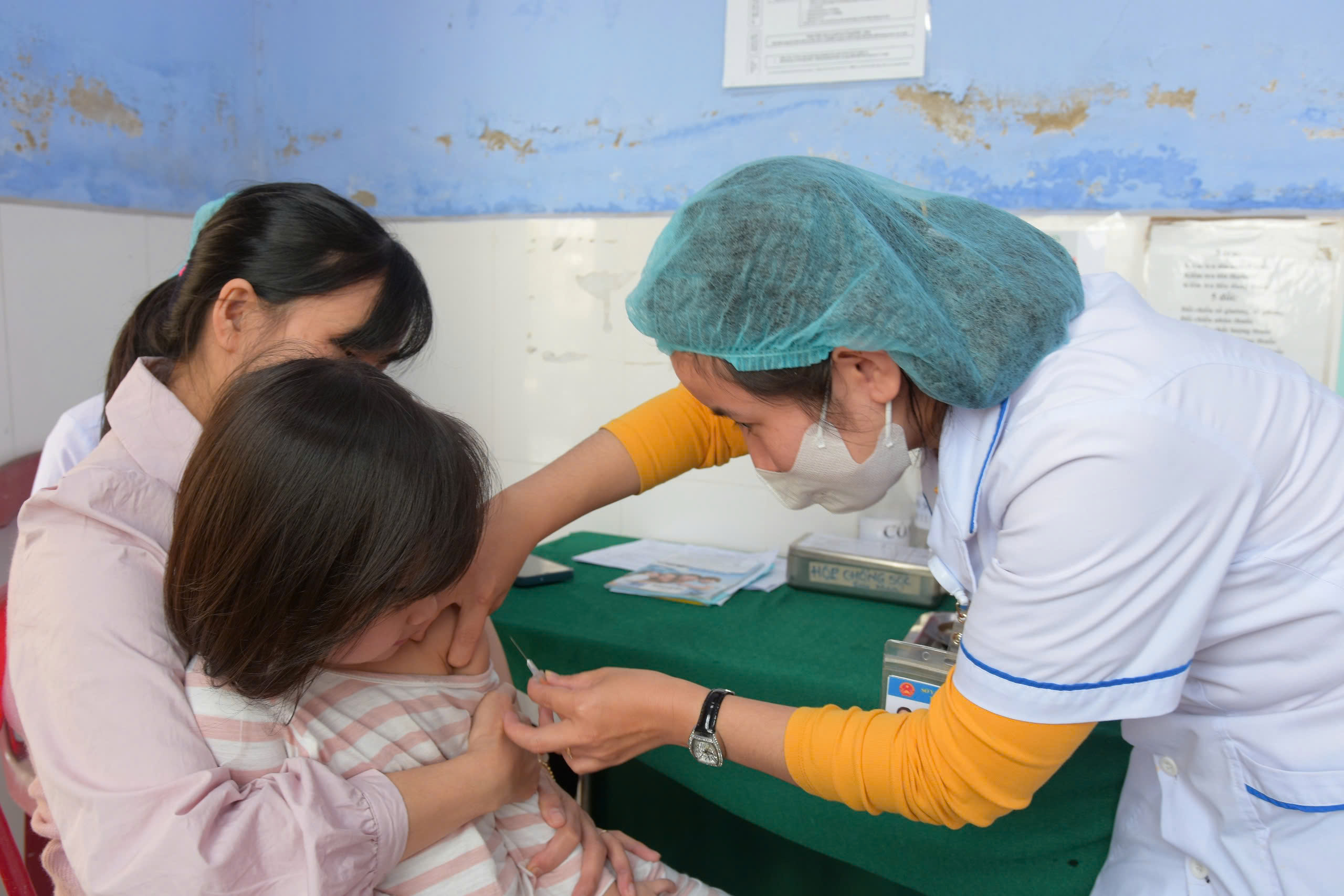 Điểm tiêm phòng vắc xin Sởi tại trạm Y tế phường Phú Thượng.