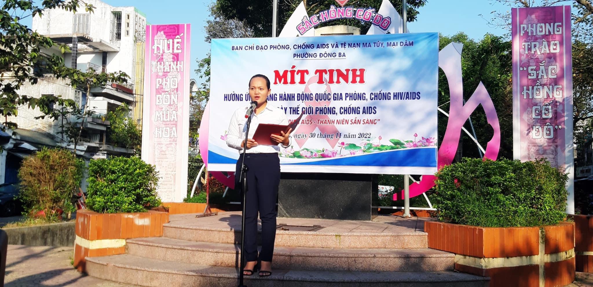 Từ ngày 10/11 đến 10/12/2022, để hưởng ứng Tháng hành động quốc gia và Ngày Thế giới phòng, chống AIDS (01/12), thành phố Huế đã tổ chức nhiều hoạt động như lễ phát động, diễu hành, truyền thông lưu động tại 36 phường, xã trên địa bàn.