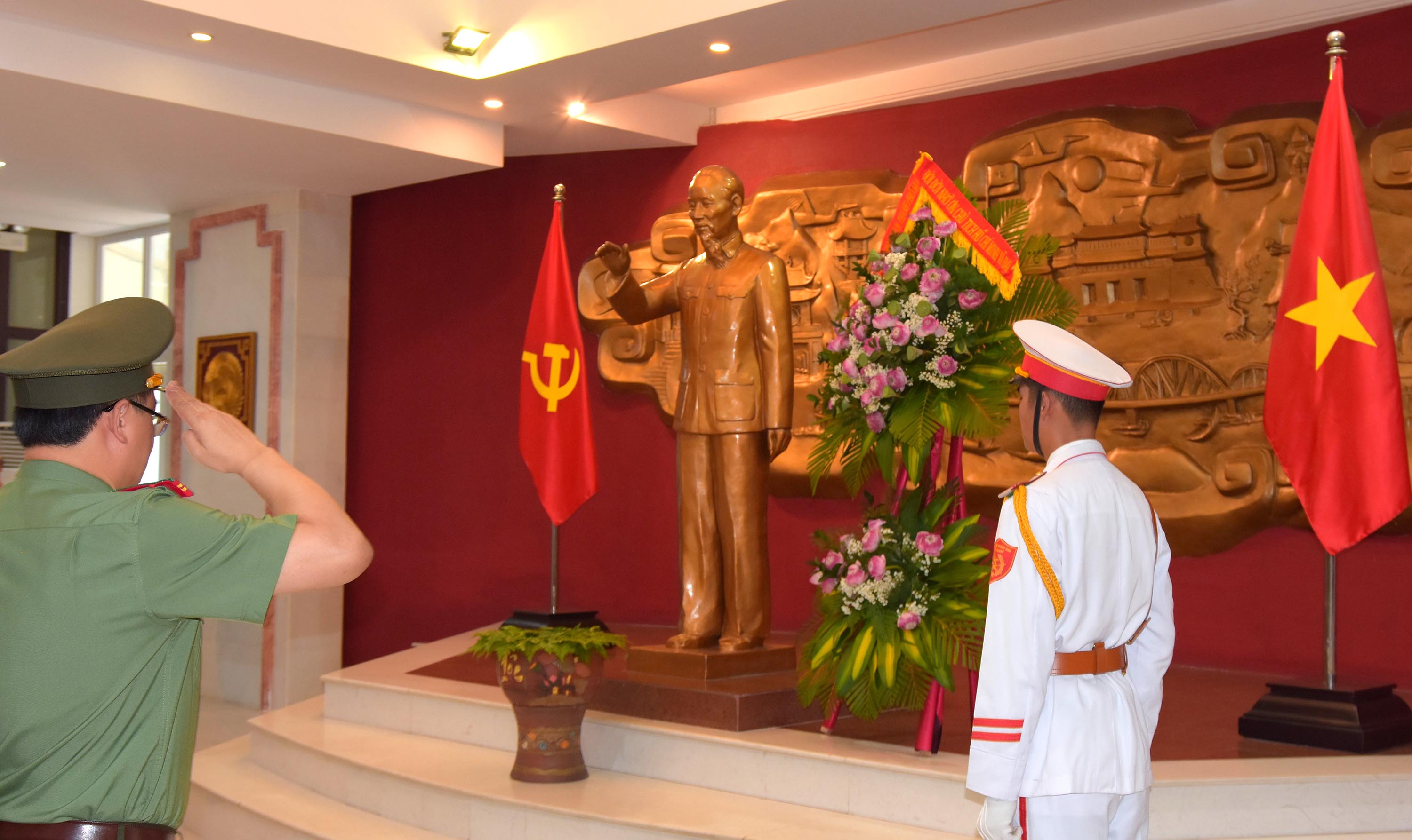 Đồng chí Ngô Duy Bình - Bí thư Chi bộ, đ/c Phan Văn Hùng - Phó Bí thư cùng gần 30 đảng viên Chi bộ Trung tâm Bảo trợ xã hội - Sở Y tế kính cẩn dâng lẵng hoa tươi thắm trước tượng Bác Hồ kính yêu.