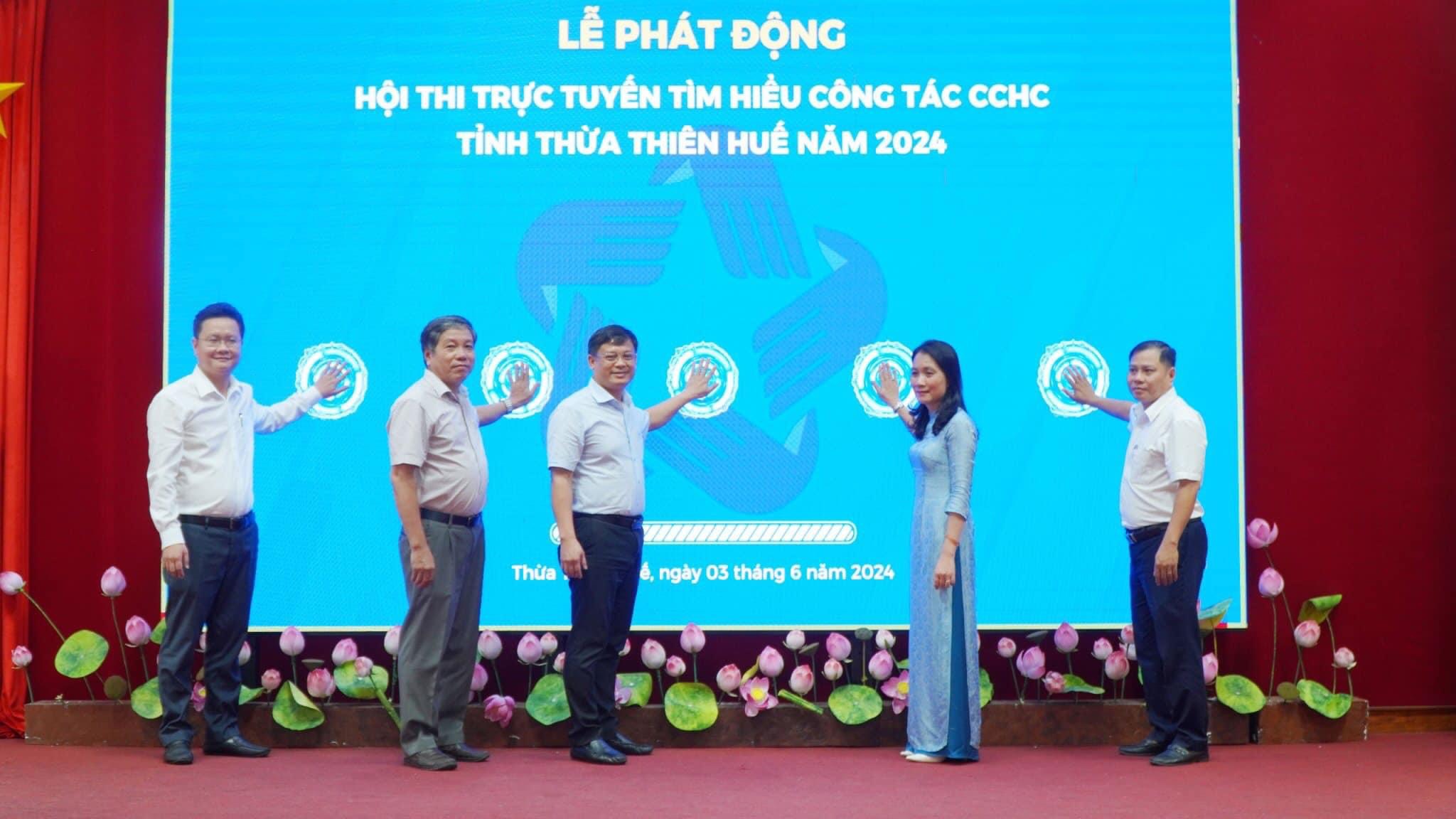 Chiều ngày 03/6, UBND tỉnh tổ chức Lễ phát động Hội thi trực tuyến tìm hiểu công tác cải cách hành chính tỉnh Thừa Thiên Huế năm 2024 ( Ảnh: Cổng thông tin điện tử tỉnh Thừa Thiên Huế; https://thuathienhue.gov.vn)