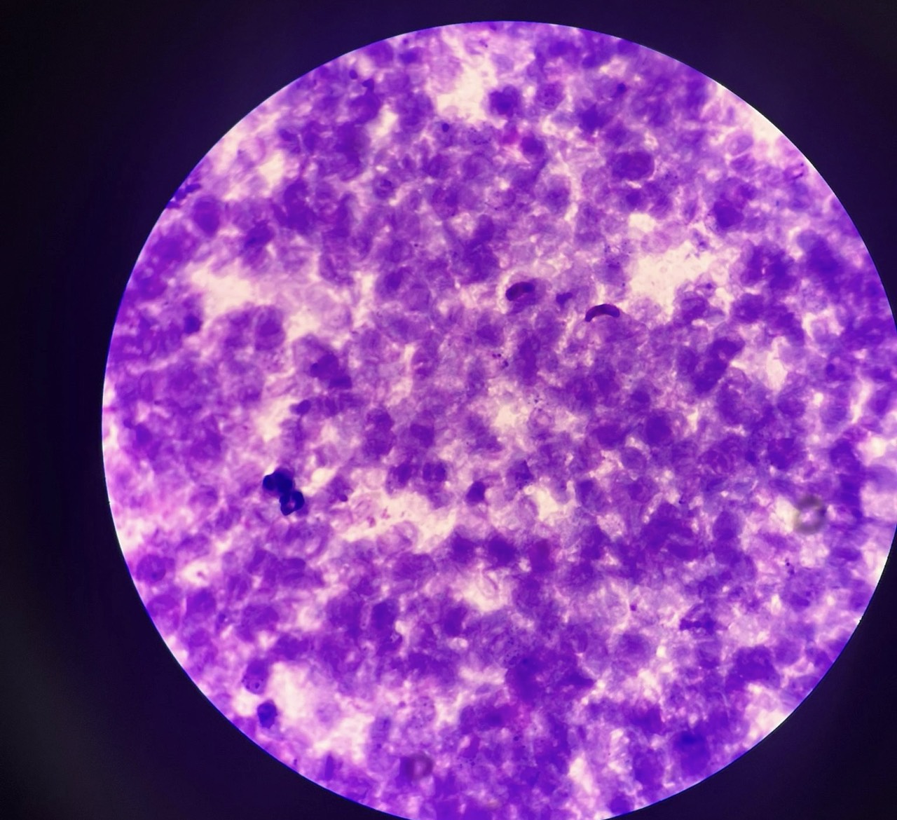 Ngày 05/7/2024 bệnh nhân có triệu chứng sốt nhẹ, mệt mõi, nhập viện được xét nghiệm có kết quả dương tính với ký sinh trùng sốt rét Plasmodium falciparum