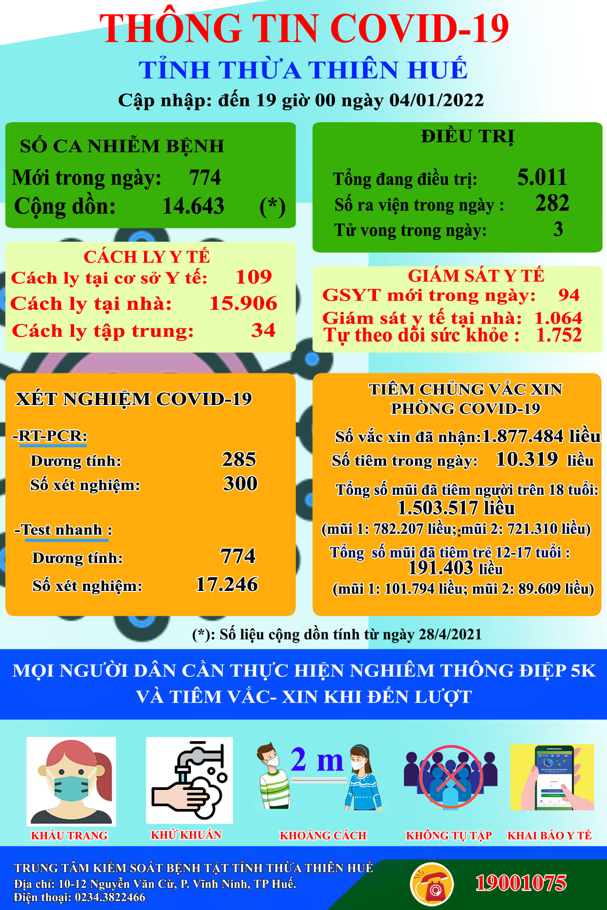 Thông tin dịch COVID -19 tỉnh Thừa Thiên Huế ngày 04.01.2022