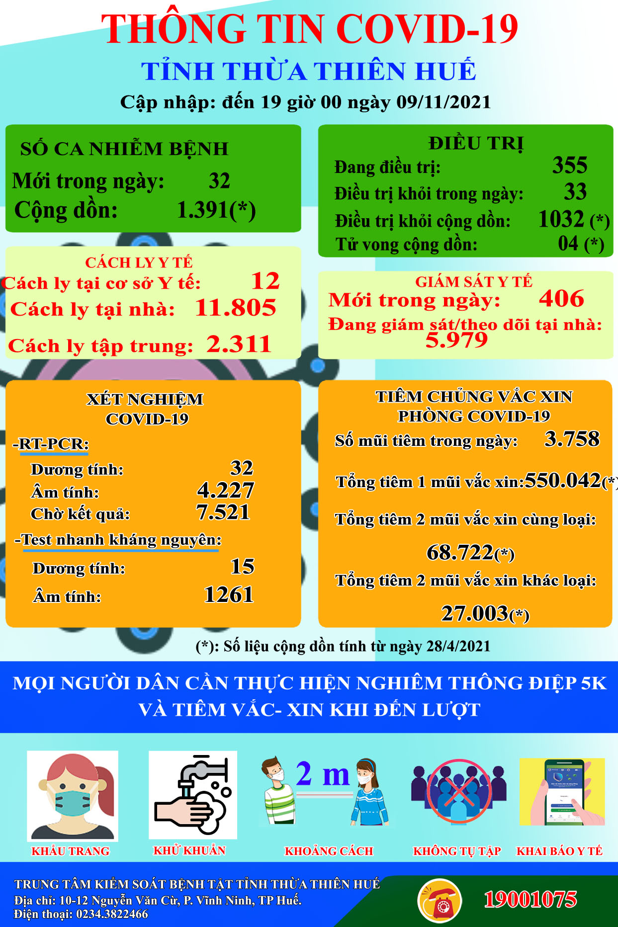 Thông tin Covid-19 tỉnh Thừa Thiên Huế ngày 09/11/2021