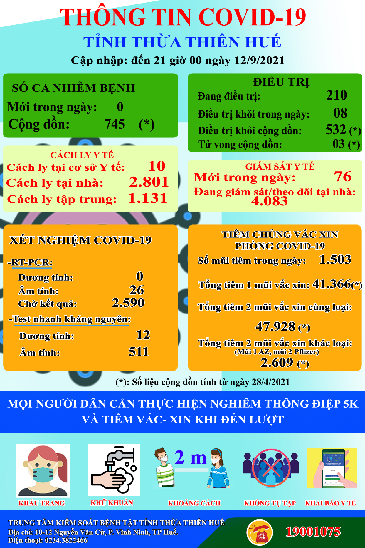 Thông tin dịch COVID -19 tỉnh Thừa Thiên Huế ngày 12.9.2021