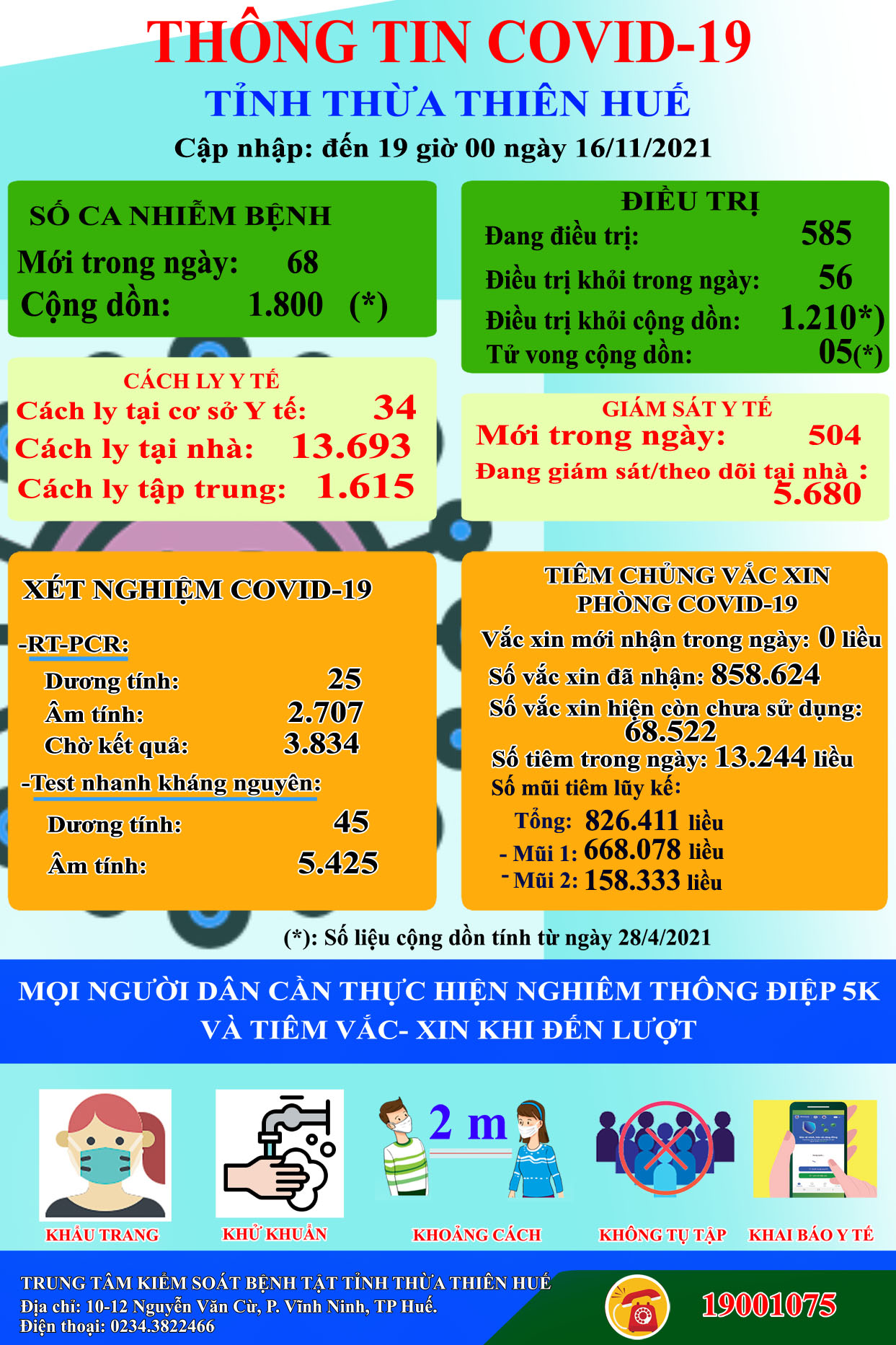 Thông tin COVID -19 tỉnh Thừa Thiên Huế ngày 16.11.2021