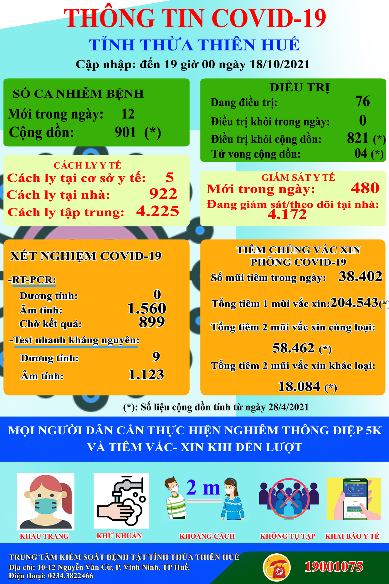 Thông tin dịch COVID -19 tỉnh Thừa Thiên Huế ngày 18.10.2021
