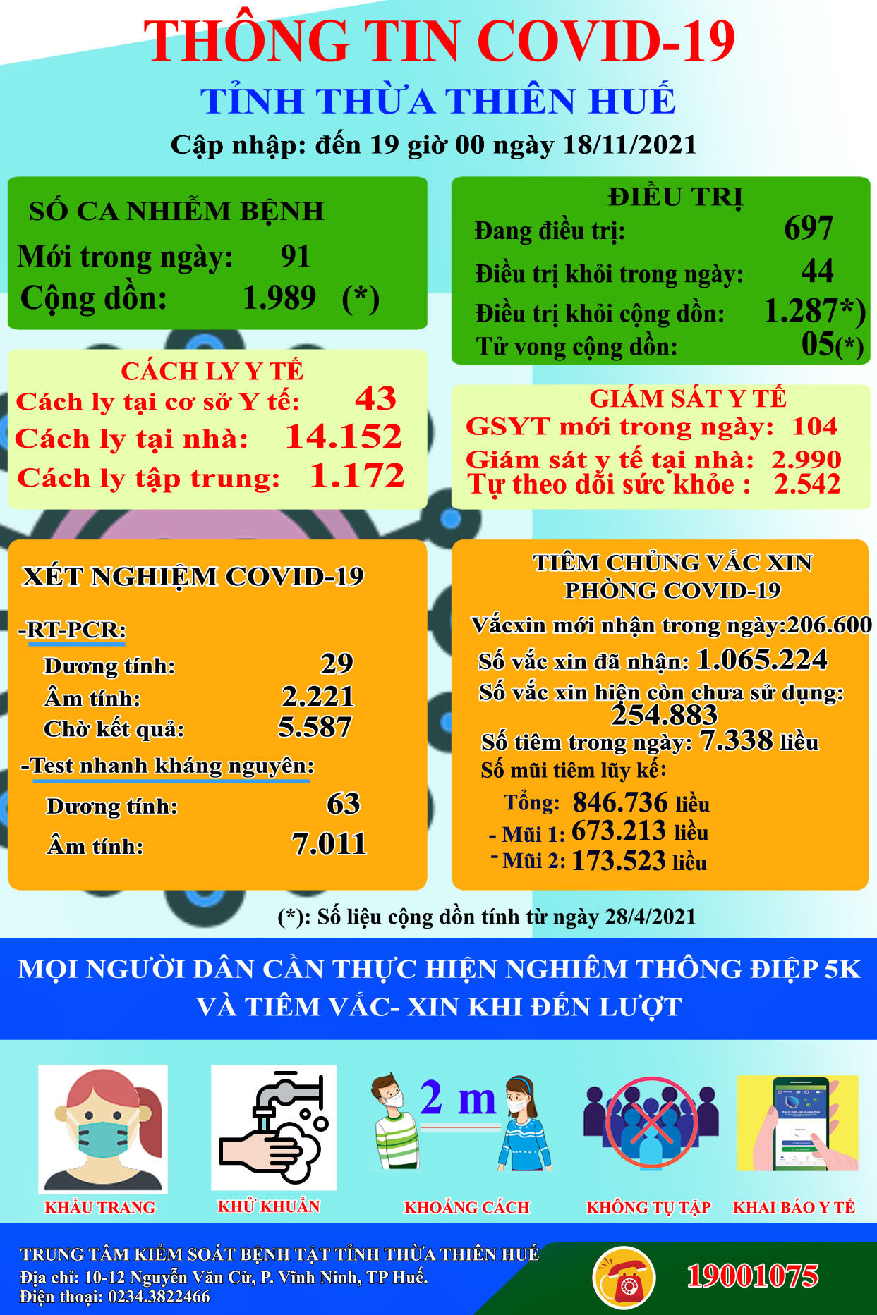 Thông tin COVID -19 tỉnh Thừa Thiên Huế ngày 19.11.2021