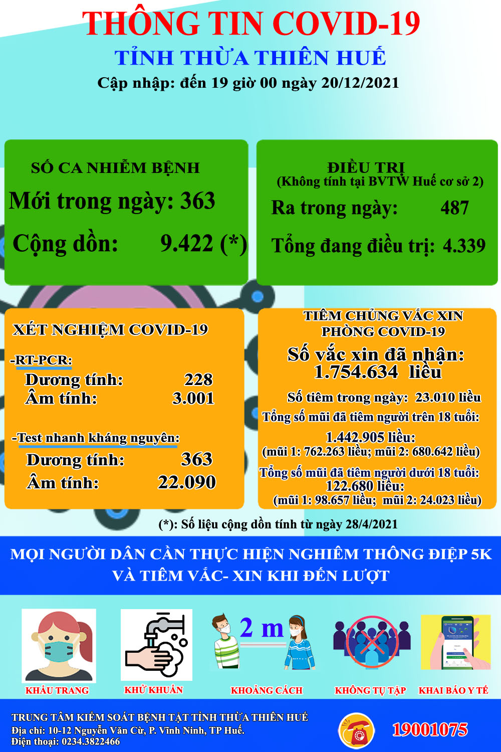 Thông tin dịch COVID -19 tỉnh Thừa Thiên Huế ngày 20.12.2021