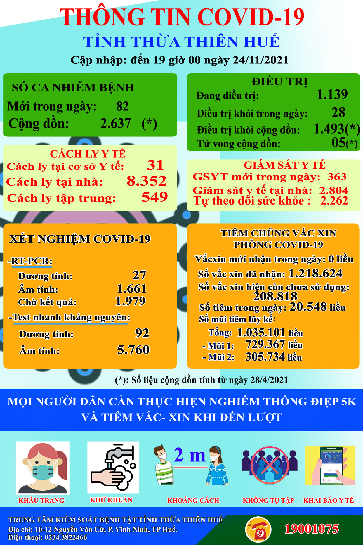 Thông tin Covid-19 tỉnh Thừa Thiên Huế (ngày 24/11/2021)