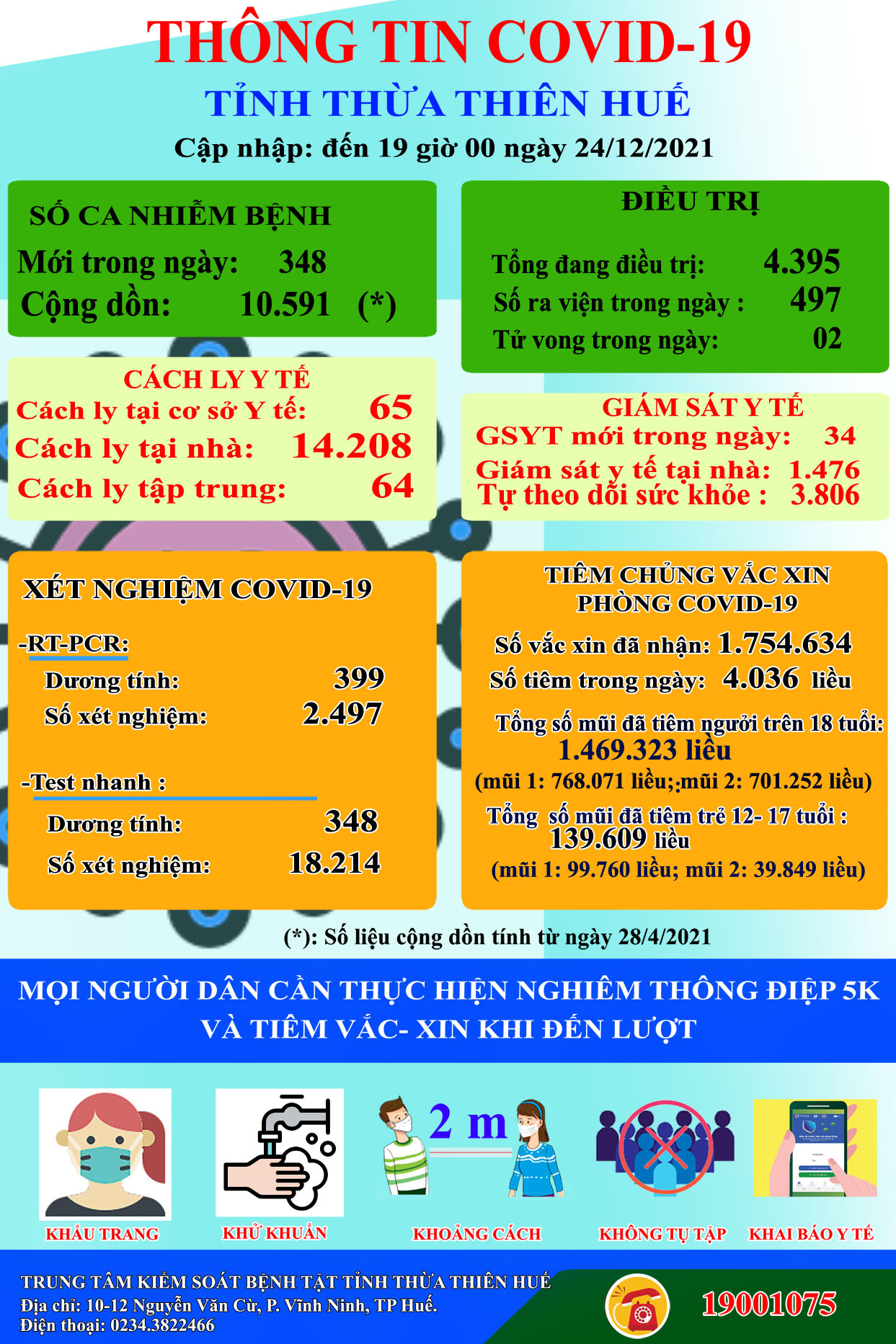 Thông tin Covid-19 tỉnh Thừa Thiên Huế (ngày 24/12/2021)