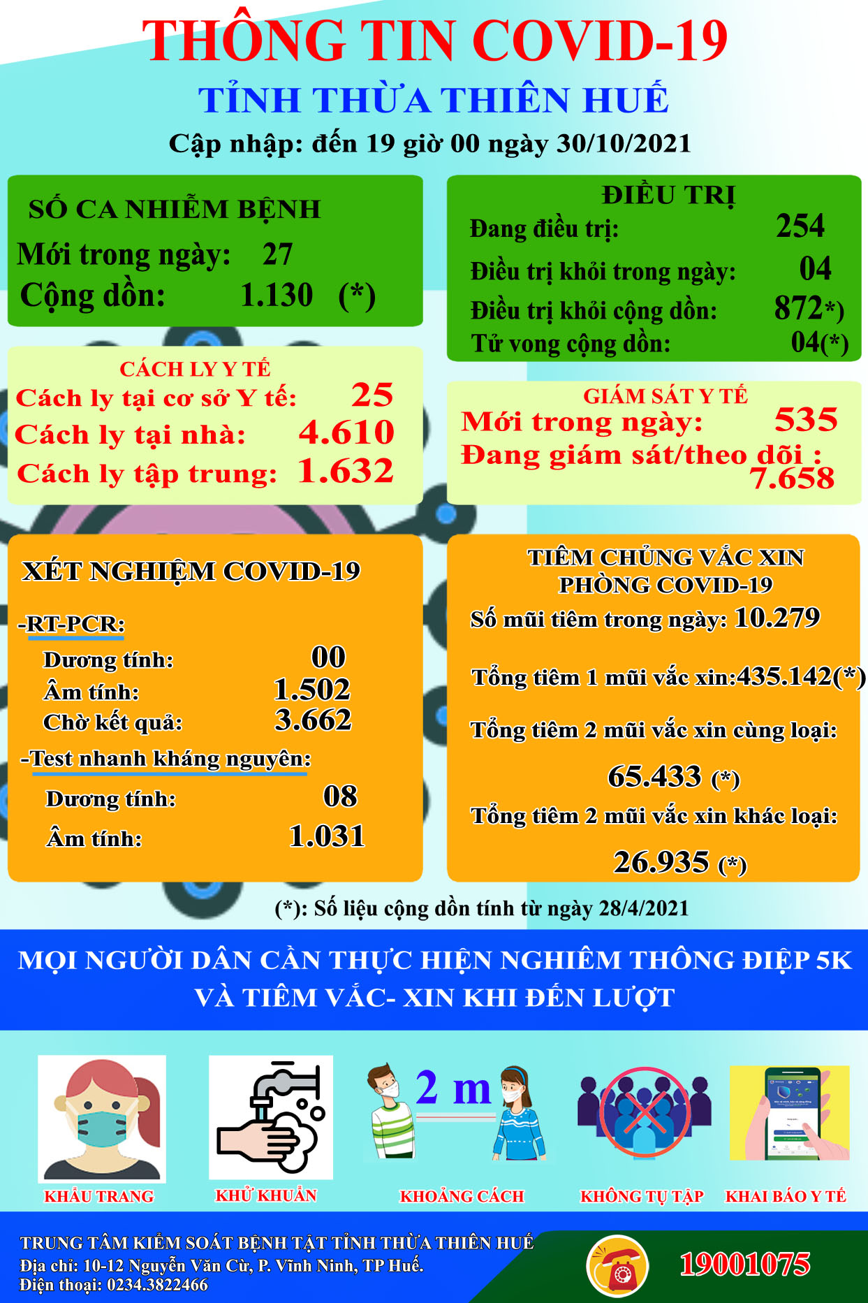 Thông tin dịch COVID -19 tỉnh Thừa Thiên Huế ngày 30.10.2021
