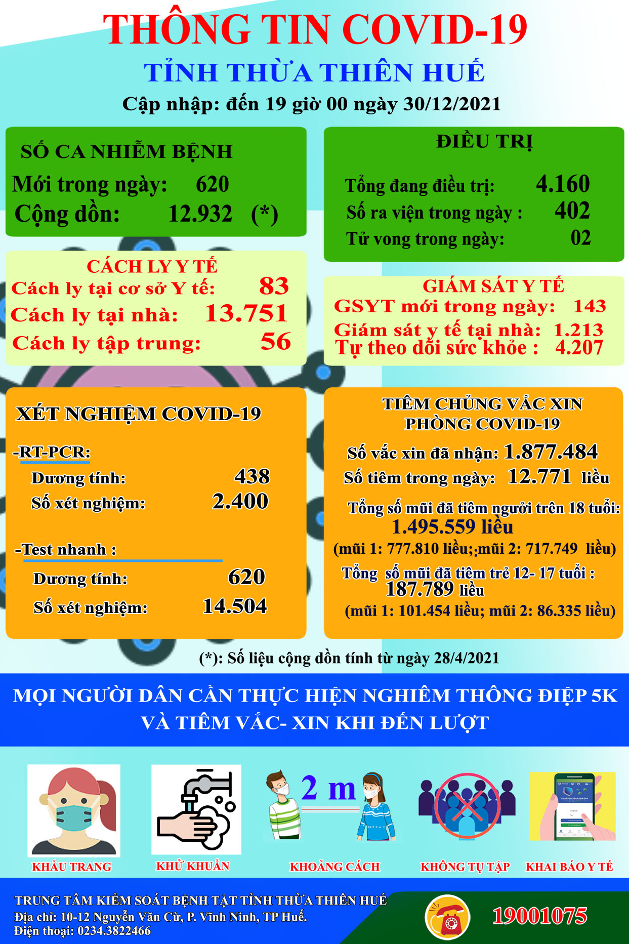 Thông tin Covid-19 tỉnh Thừa Thiên Huế (ngày30/12/2021)