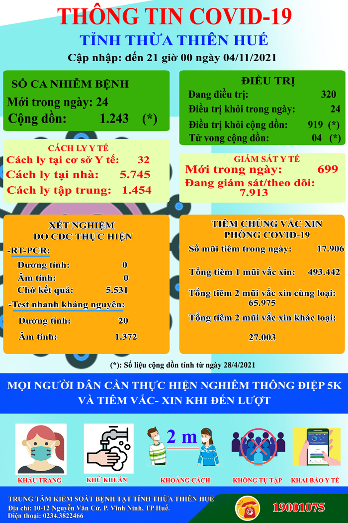 Thông tin Covid-19 tỉnh Thừa Thiên Huế ngày 04/11/2021