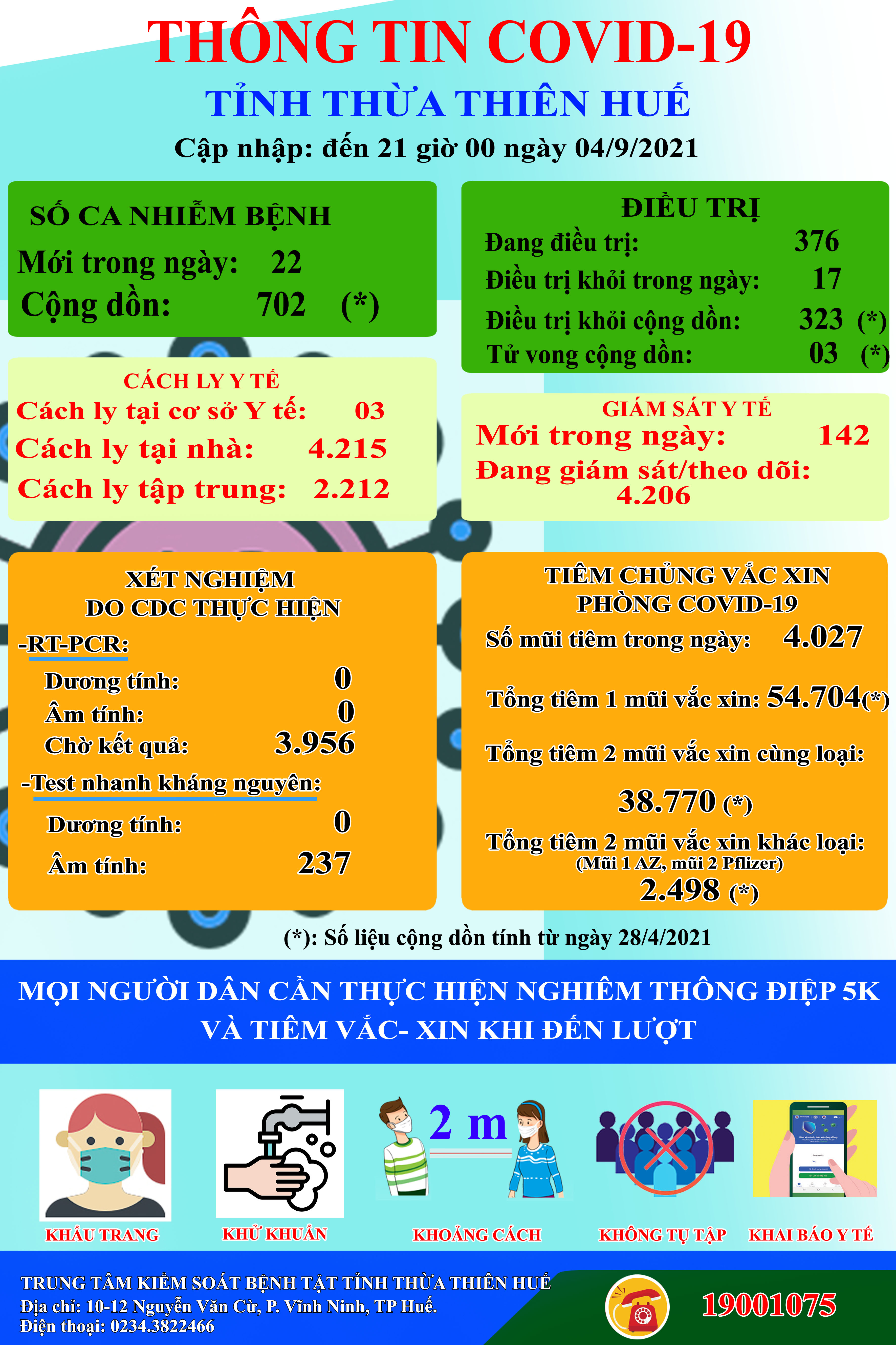 Thông tin dịch Covid-19 tỉnh Thừa Thiên Huế (ngày 04/9/2021)