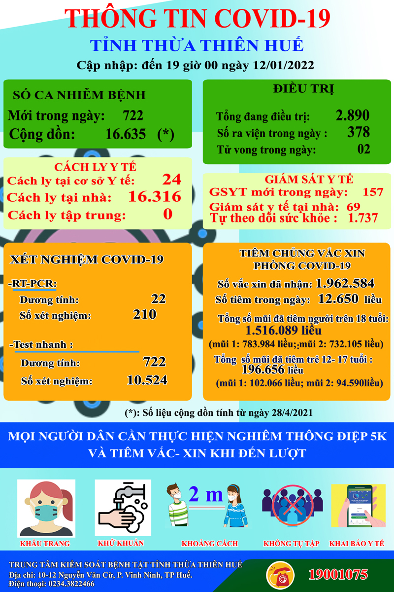 Thông tin Covid-19 tỉnh Thừa Thiên Huế (12/1/2022))