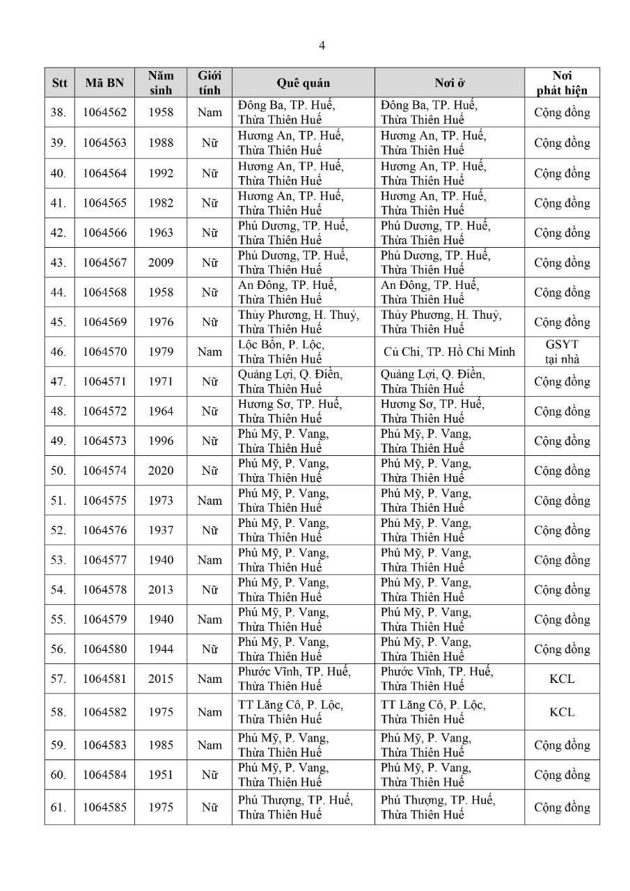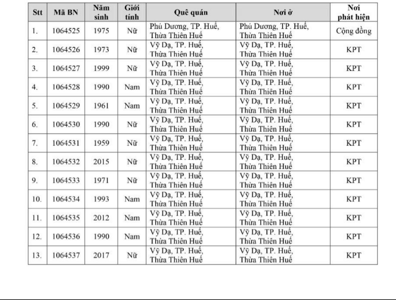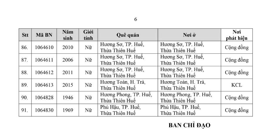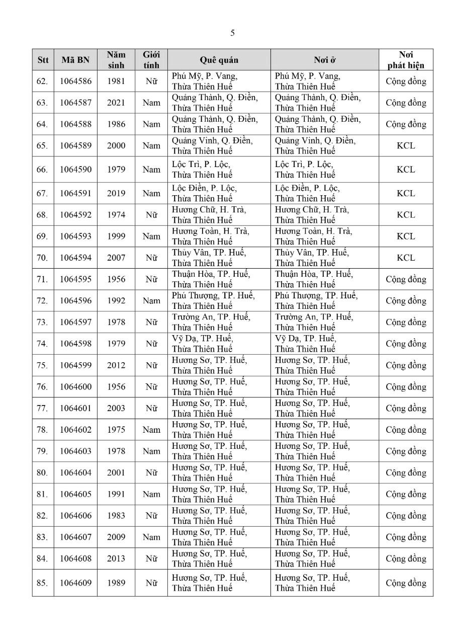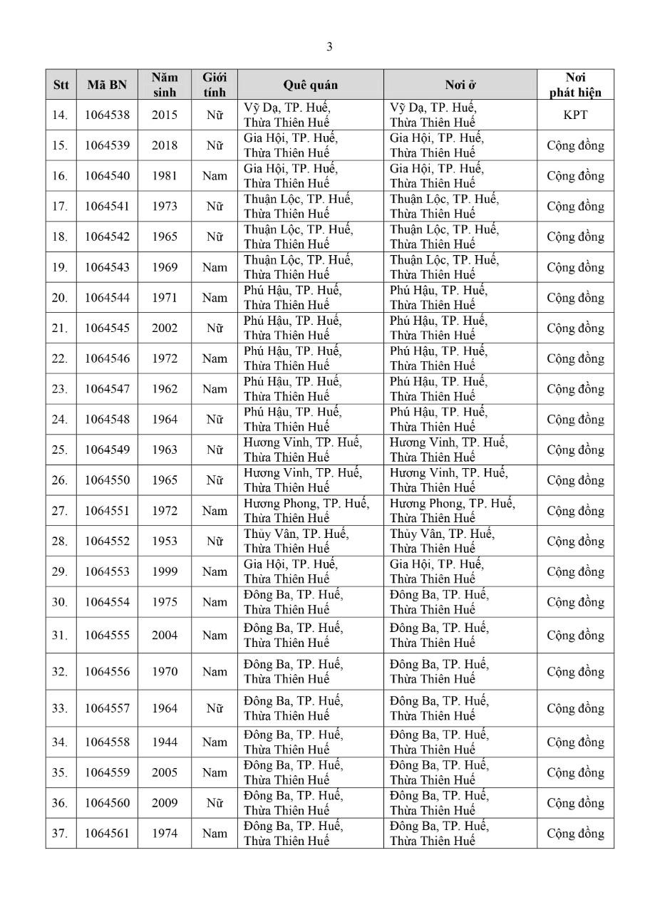 Kết quả đến 18h00 ngày 18/11/2021, tỉnh Thừa Thiên Huế ghi nhận thêm 91 ca bệnh khẳng định dương tính SARS-CoV-2. Trong đó, phát hiện tại khu cách ly tập trung (KCL): 09; tại khu phong toả (KPT): 13; giám sát y tế (GSYT) tại nhà: 01; tại cộng đồng: 68 (được đưa vào khu cách ly y tế ngay sau khi phát hiện).