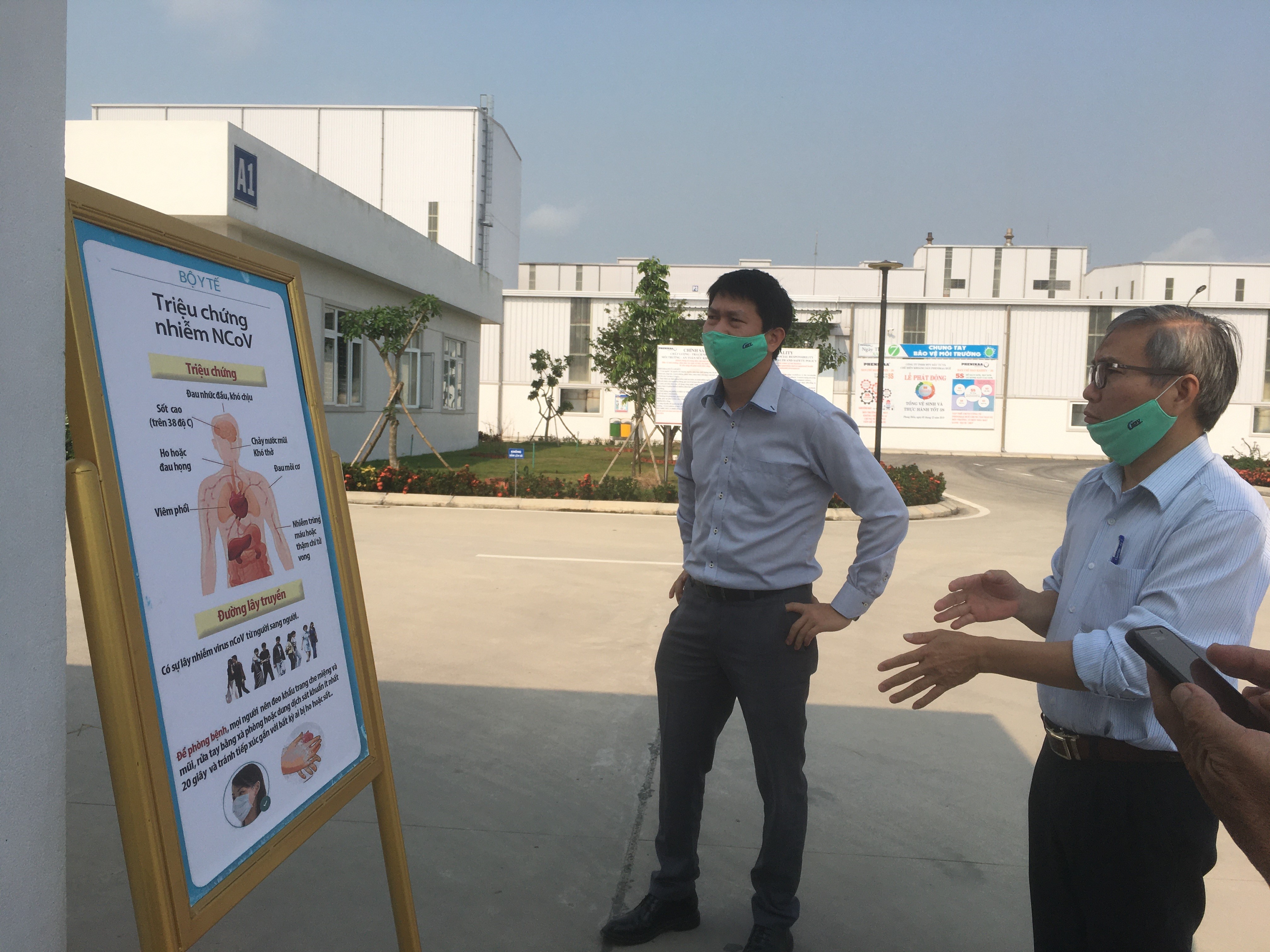 Tuy nhiên, sau khi kiểm tra bác sĩ Phan Đăng Tâm, đại diện Tiểu ban giám sát, truyền thông đề nghị các nhà máy thành lập ngay các ban chỉ đạo phòng chống dịch, phân công phân nhiệm cụ thể để chủ động triển khai kế hoạch phòng chống dịch mang tính lâu dài. Nhà máy cần xây dựng kế hoạch hậu cần cụ thể để không bị động trước tình huống dịch bệnh có khả năng kéo dài. Nên thông báo cho công nhân hạn chế đến vùng dịch và báo cho đơn vị biết tình hình bản thân và người nhà đi từ vùng dịch về, đặc biệt vùng đông nam á. Chú ý ghi chép tên tuổi, số điện thoại và lịch trình của những xe đến giao dịch tại nhà máy để dễ quản lý về mặt dịch tễ khi có tình huống dịch xảy ra. Nhà máy nên giám sát lịch di chuyển của những lãnh đạo và công nhân nước ngoài, nắm lại địa chỉ cư trú, đặc biệt nơi lưu trú hiện nay của công nhân thật chặt chẽ, đồng thời triển khai sử dụng ứng dụng khai báo thông tin sức khỏe hiện tại để có thể được hỗ trợ nhanh nhất từ cơ quan y tế. Quan tâm đến an toàn vệ sinh thực phẩm trong mùa dịch và tính toán bố trí nhiều giờ ăn để hạn chế bữa ăn quá đông người, các bàn ăn phải cách xa trên 2m. Chuẩn bị khu cách ly tạm thời khép kín, độc lập, thông thoáng và có phòng vệ sinh riêng. Đặc biệt xây dựng các tình huống xử lý phải tuân thủ theo quy định của ngành y tế.