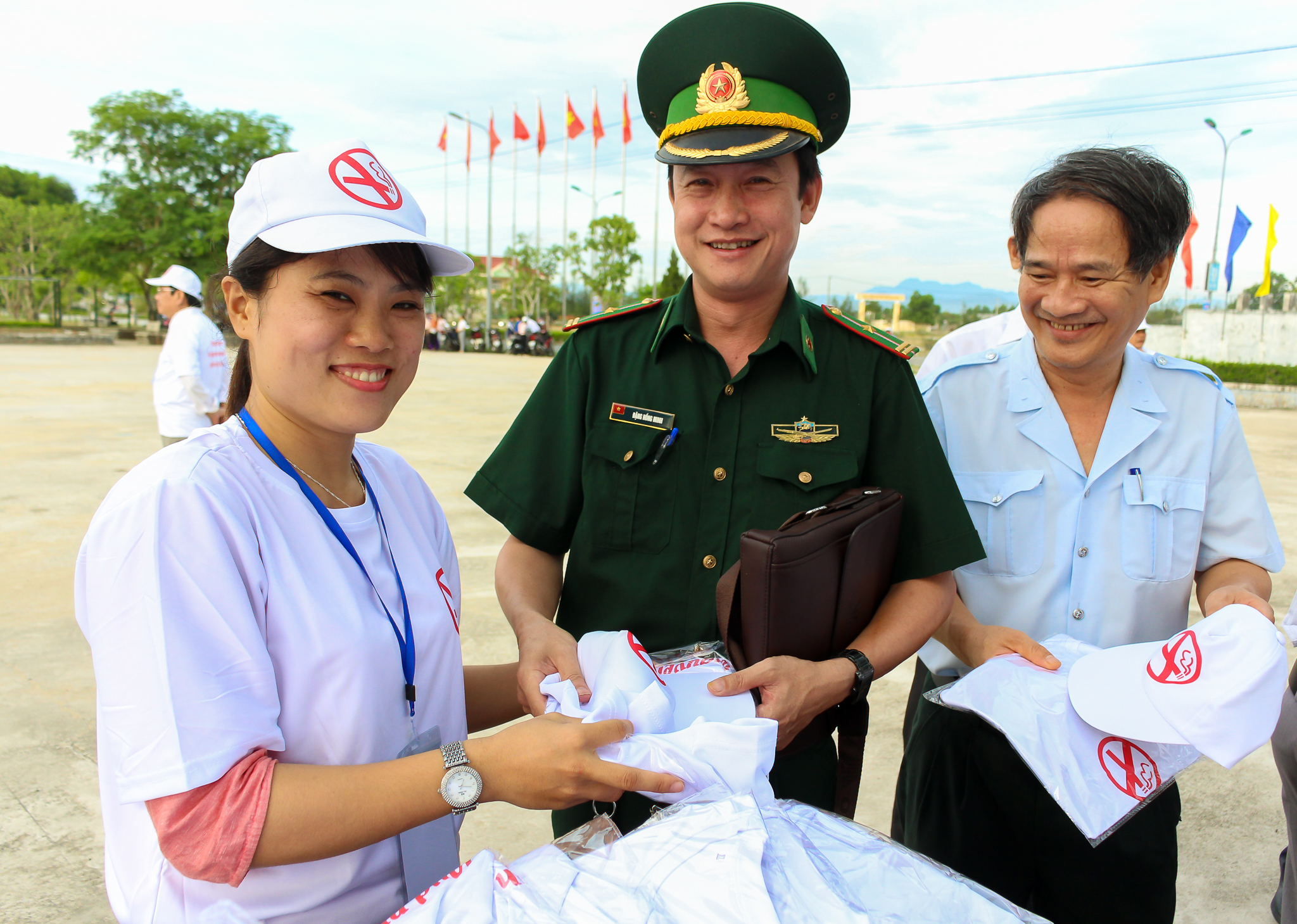 Tham dự lễ mít tinh có đồng chí Nguyễn Thái Sơn - UVTV, Trưởng Ban Tuyên giáo tỉnh ủy, đồng chí Nguyễn Thị Ái Vân - TUV, Phó Chủ tịch HĐND tỉnh, đồng chí Nguyễn Dung - TUV, Phó Chủ tịch Ủy ban nhân dân tỉnh - Trưởng Ban chỉ đạo Phòng chống tác hại của thuốc lá tỉnh Thừa Thiên Huế; đồng chí Nguyễn Nam Hùng - TUV, Giám đốc Sở Y tế - Phó Ban thường trực Ban Chỉ đạo Phòng chống tác hại của thuốc lá tỉnh Thừa Thiên Huế; đồng chí Nguyễn Đình Đức - Phó Bí thư, Chủ tịch UBND huyện Quảng Điền; đại diện lãnh đạo các ban ngành đoàn thể, các đơn vị y tế cấp tỉnh và các thành viên BCĐ PCTHTL của 9 huyện, thị, thành phố; cán bộ các ban, ngành, đoàn thể cấp huyện, UBND các xã, thị trấn huyện Quảng Điền, lực lượng vũ trang, đoàn viên thanh niên, ngành giáo dục… trên địa bàn huyện. Buổi lễ còn sự tham dự và đưa tin của các cơ quan truyền thông trung ương và địa phương.