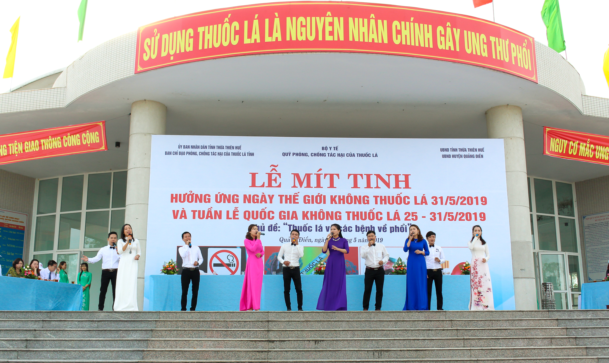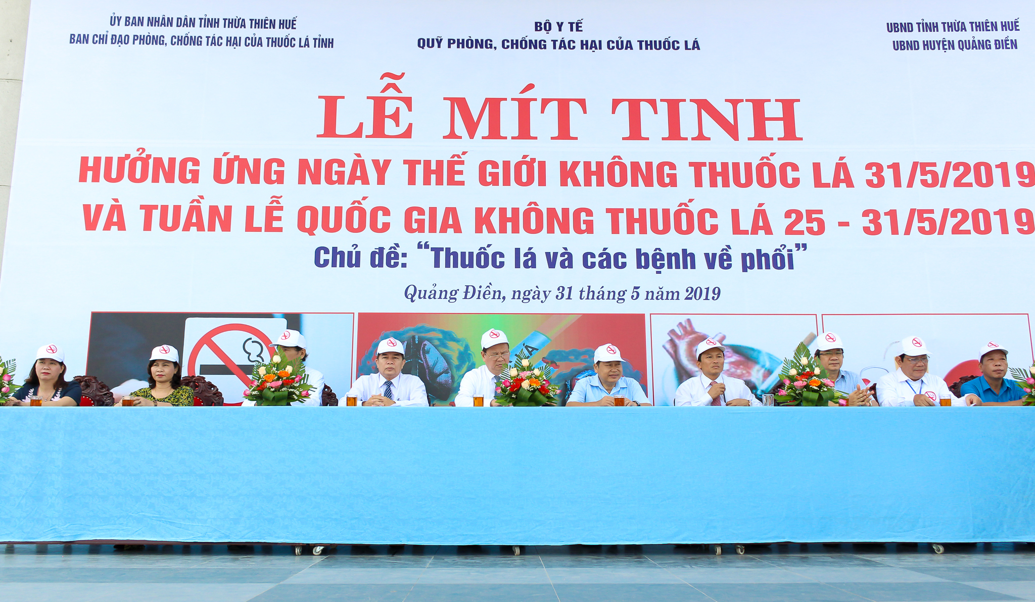 Ngày 31/5/2019 tại Trung tâm Văn hóa Thông tin - Thể thao huyện Quảng Điền, Ban chỉ đạo phòng chống tác hại của thuốc lá tỉnh Thừa Thiên Huế phối hợp với UBND huyện Quảng Điền tổ chức Lễ mít tinh hưởng ứng Ngày Thế giới không thuốc lá 31/5/2019 với chủ đề "Thuốc lá và các bệnh về phổi".