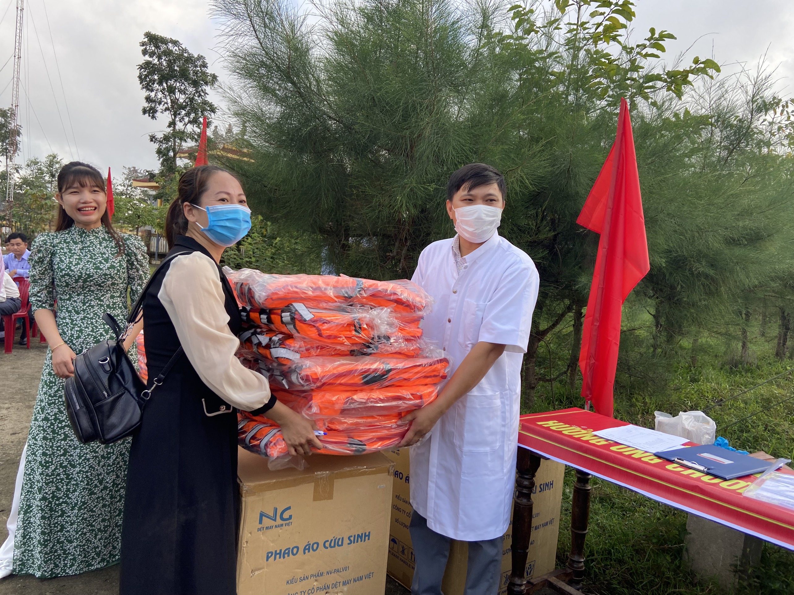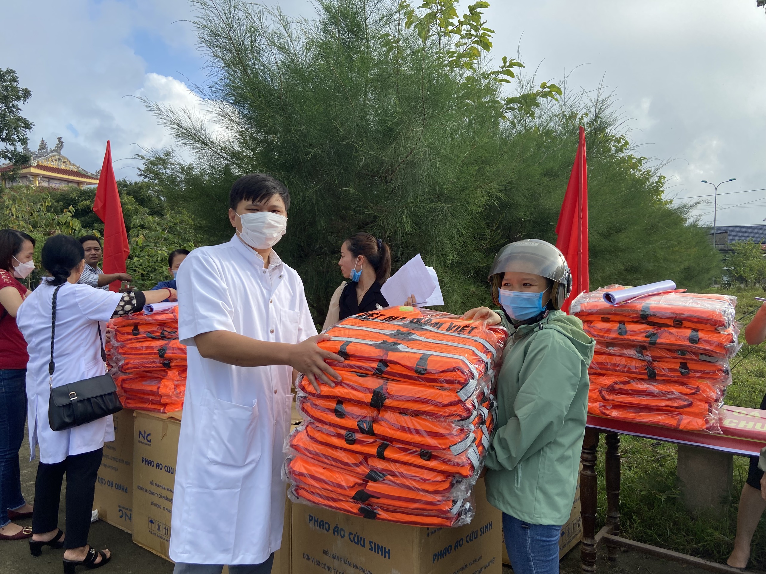 Cấp phát áo phao cho người dân