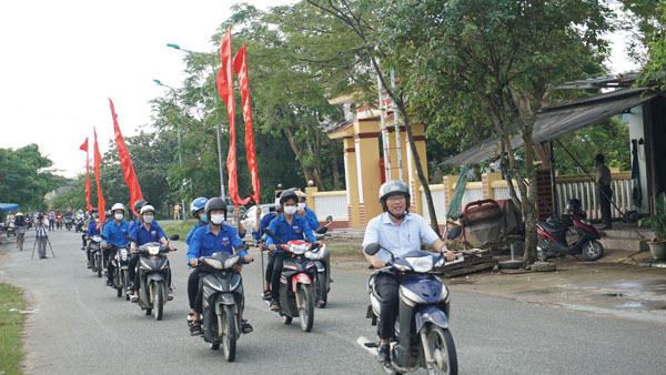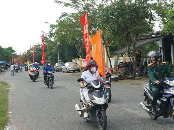 Đoàn xe diễu hành qua các tuyến đường của huyện