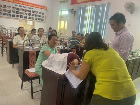 Tiếp tục hưởng ứng Tuần lễ thế giới Nuôi con bằng sữa mẹ, Trung tâm Kiểm soát bệnh tật đã tổ chức tập huấn chuyên môn lý thuyết và thực hành trên mô hình về Chăm sóc thiết yếu bà mẹ, trẻ sơ sinh trong và ngay sau đẻ (EENC), nuôi con bằng sữa mẹ, chăm sóc Kangaroo cho đội ngủ cán bộ y tế là bác sỹ, hộ sinh, điều dưỡng làm công tác Sản - Nhi tại Bệnh viện huyện Phong Điền và Phú Lộc.