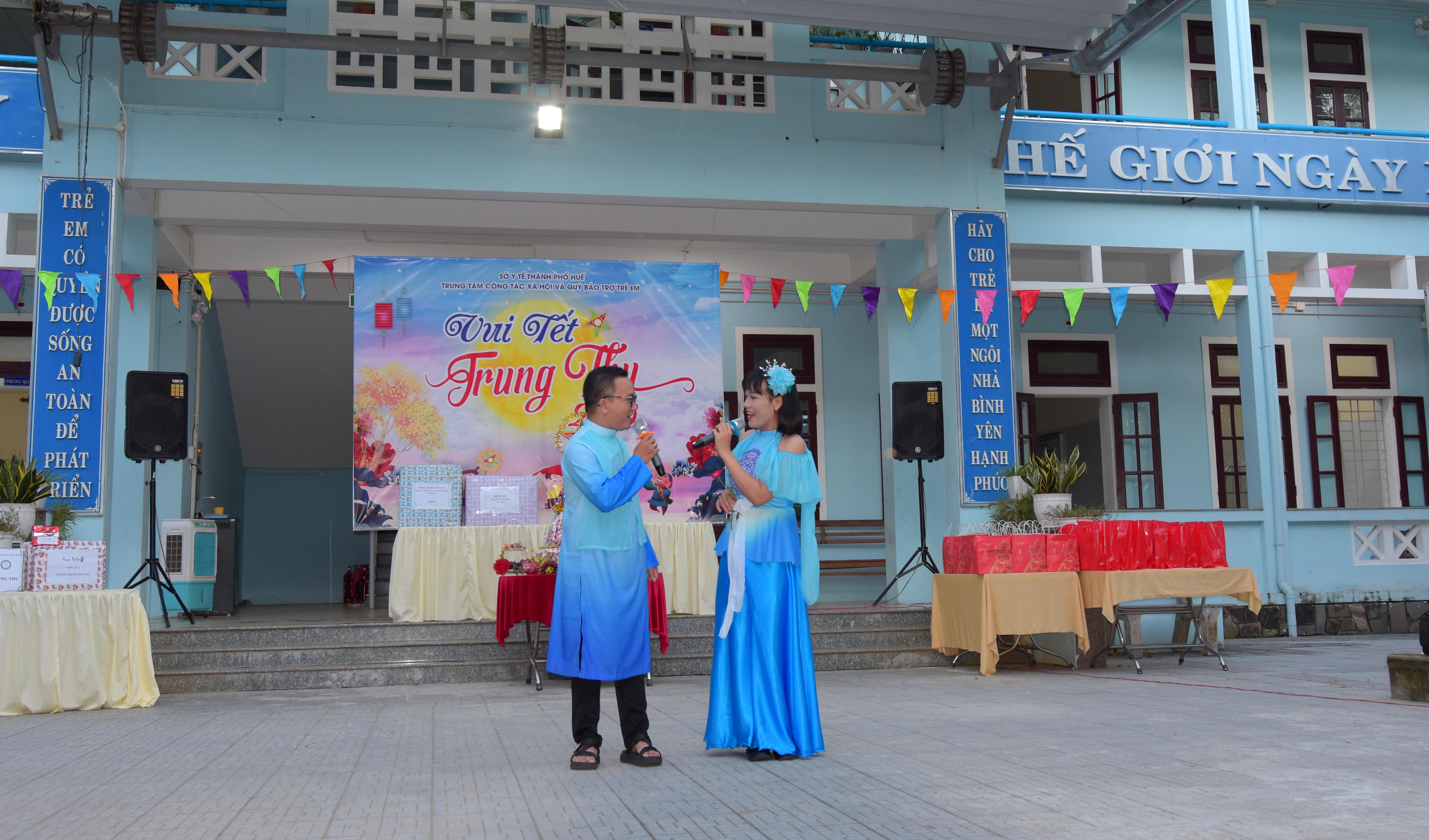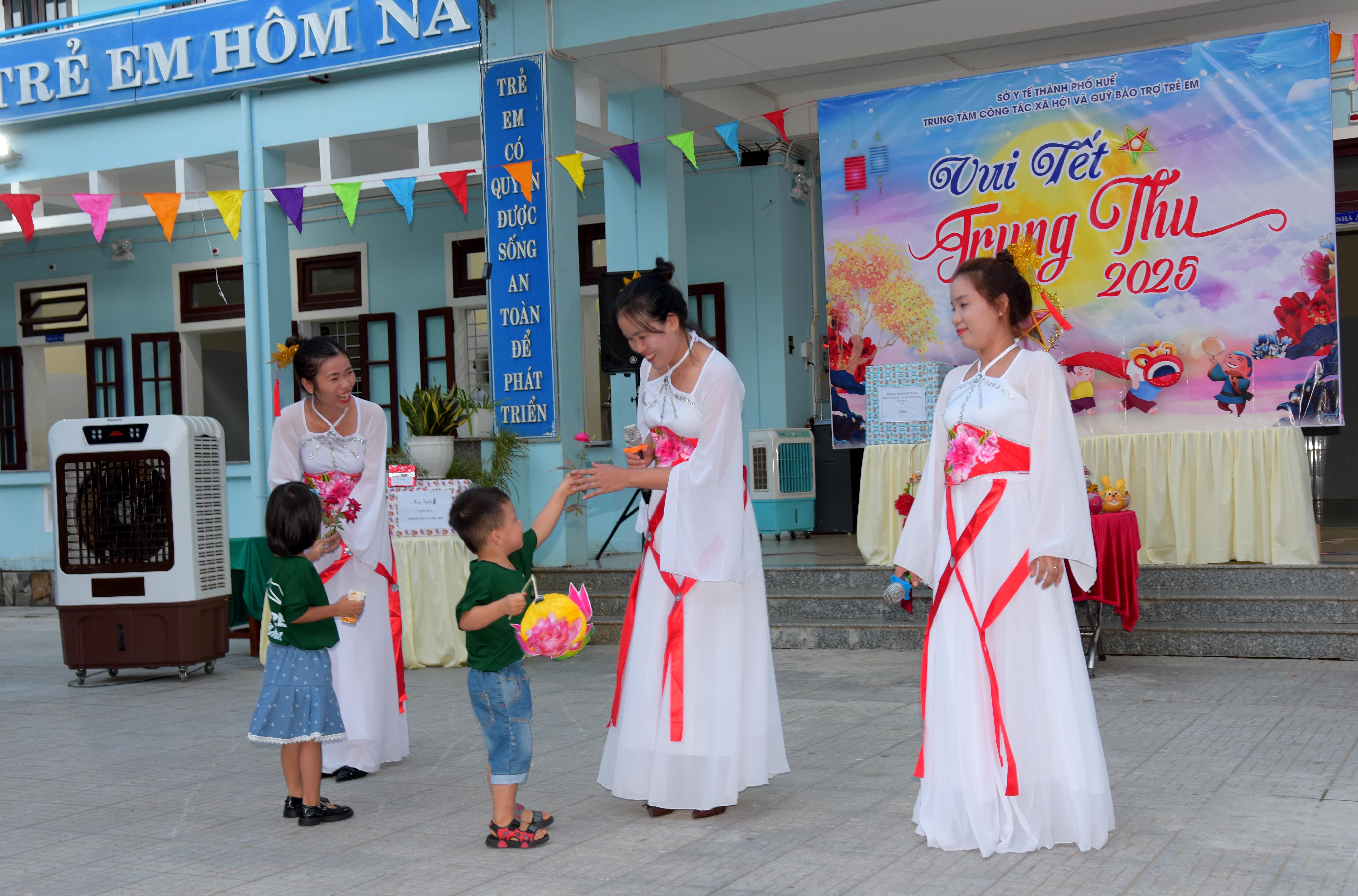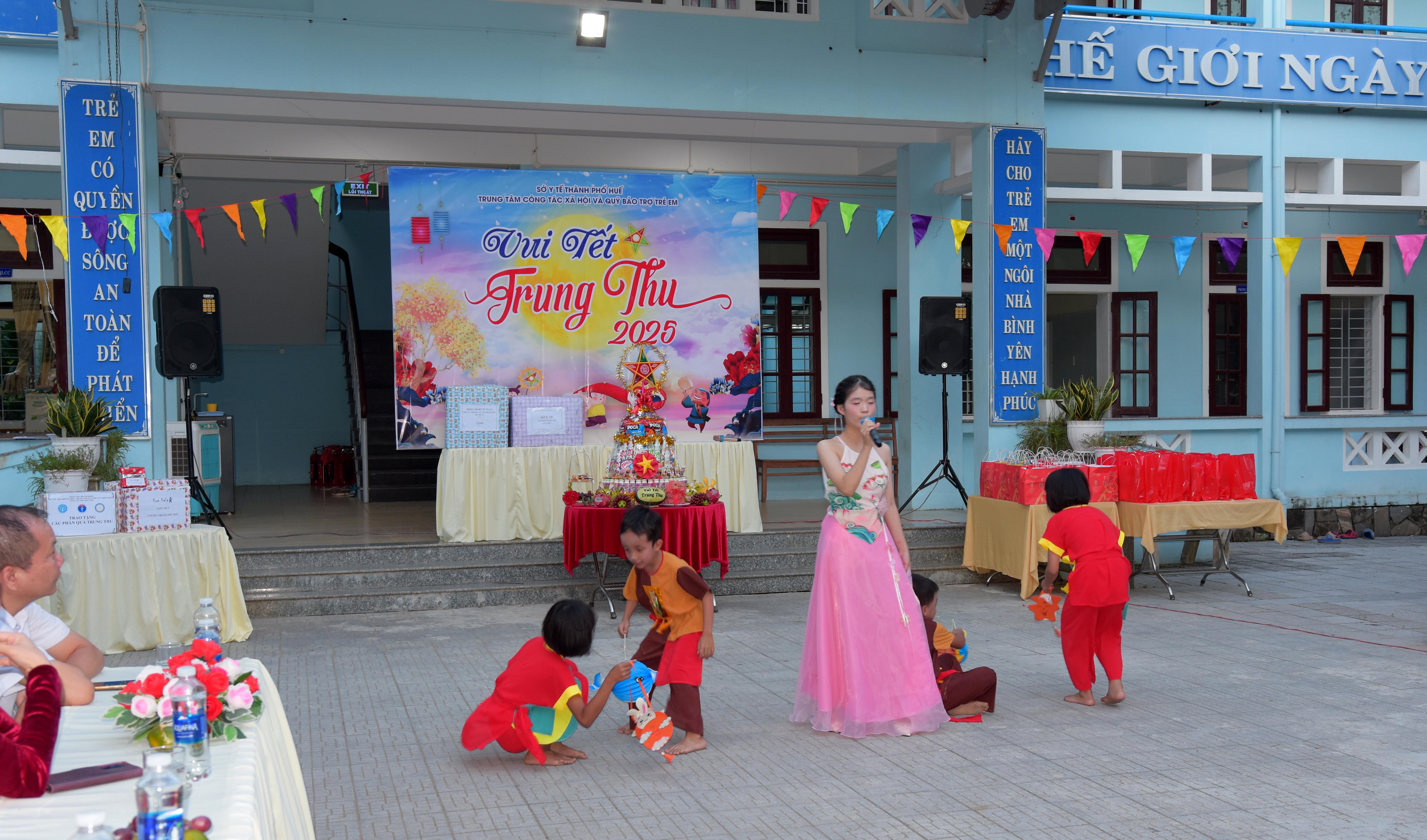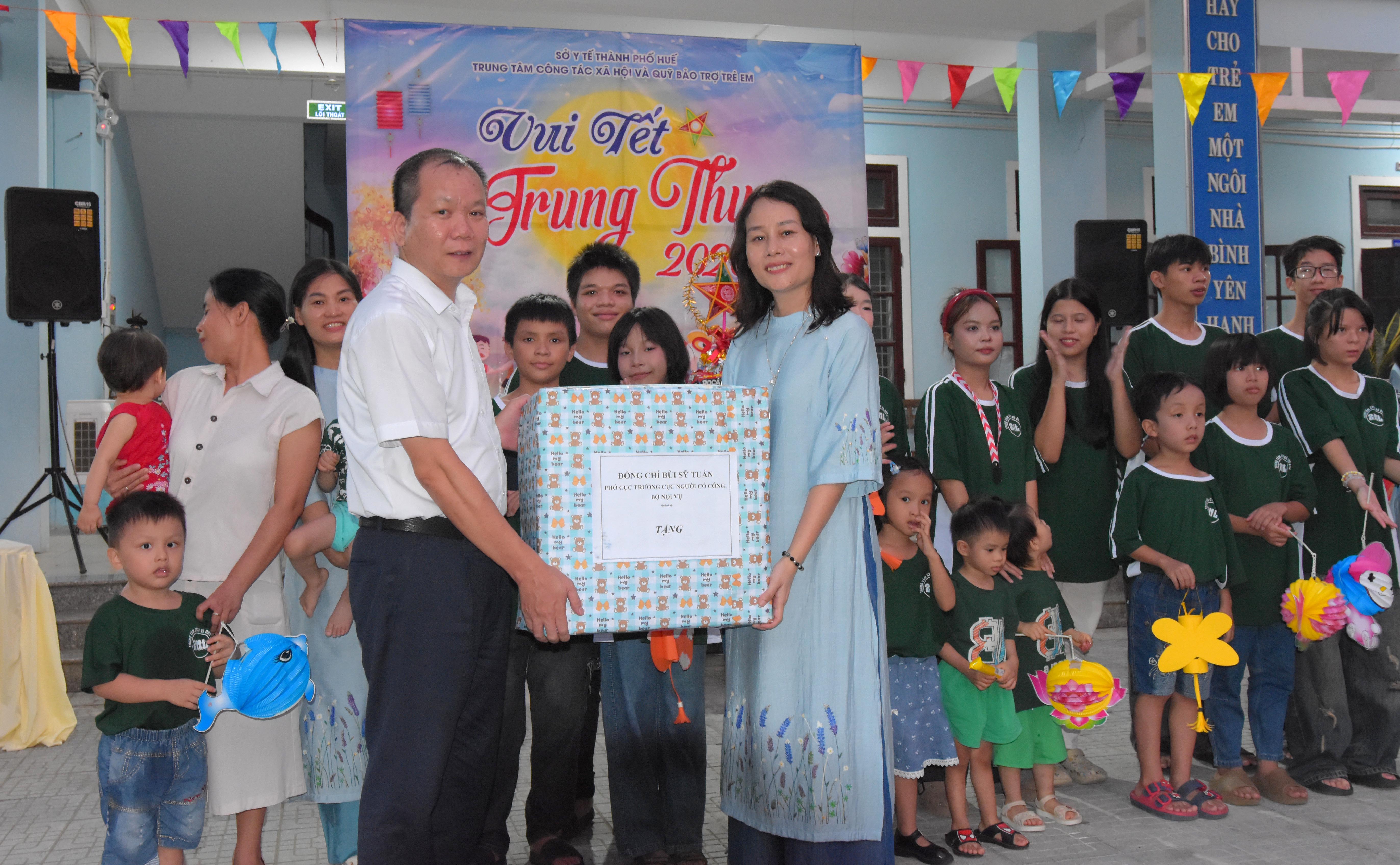Tham dự chương trình “Vui Tết Trung thu - 2025” với các cháu có ThS. Phan Minh Nguyệt - Phó Giám đốc Sở Y tế; ông Bùi Sĩ Tuấn - Phó Cục trưởng Cục Người có công - Bộ Nội vụ; đại diện lãnh đạo UBND phường Hương An, Phòng Bảo trợ xã hội, Phòng Dân số - Trẻ em Sở Y tế; các nhà tài trợ, sinh viên trường Đại học Khoa học Huế, Ban Giám đốc, lãnh đạo và nhân viên các phòng thuộc Trung tâm Công tác xã hội và Quỹ Bảo trợ trẻ em (Trung tâm) - Sở Y tế thành phố Huế.