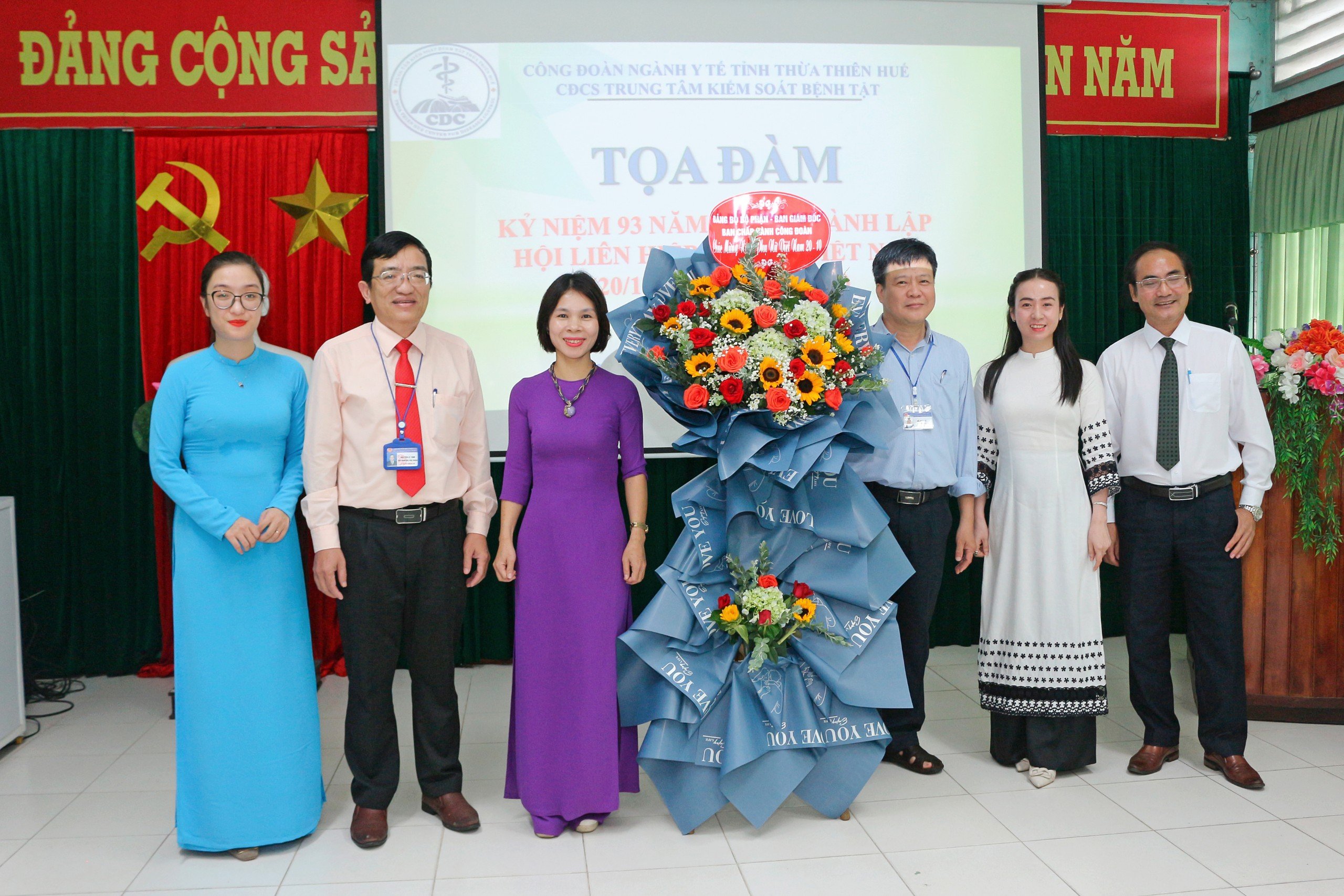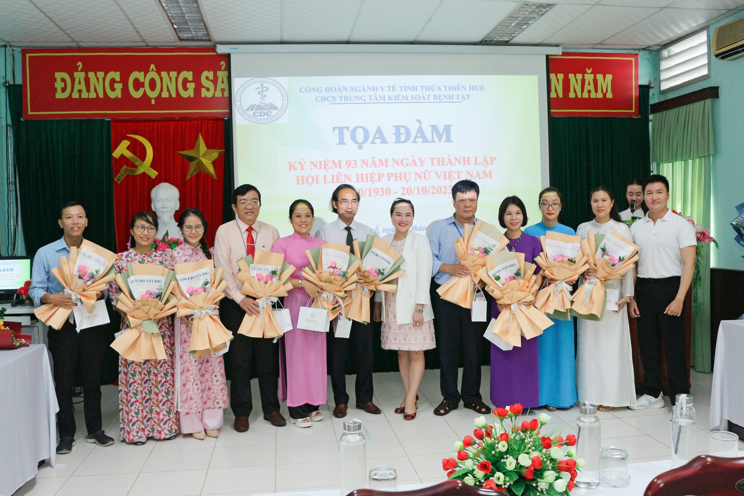 Ban Giám đốc Trung tâm Kiểm soát bệnh tật tặng hoa chúc mừng cho đại diện Ban nữ công nhân ngày Phụ nữ Việt Nam 20/10/2023.