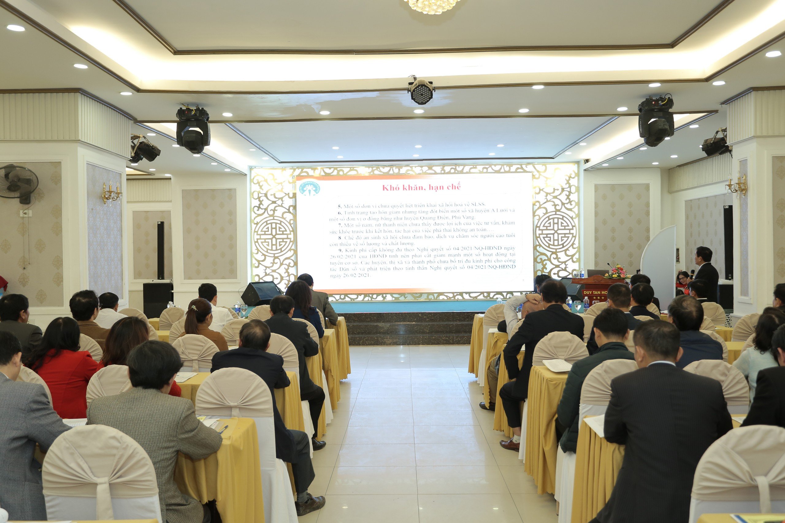 Phát biểu chỉ đạo tại hội nghị, PGS.TS Trần Kiêm Hảo - Giám đốc Sở Y tế - Phó trưởng Ban chỉ đạo công tác DS-KHHGĐ đã đề nghị phải tăng cường sự lãnh đạo, chỉ đạo của cấp ủy, chính quyền các cấp về công tác dân số và phát triển, tạo sự đồng thuận cao trong toàn xã hội, tiếp tục chuyển trọng tâm chính sách từ tập trung vào KHHGĐ sang giải quyết toàn diện các vấn đề quy mô, cơ cấu, phân bố và chất lượng dân số góp phần thực hiện thành công các chỉ tiêu về dân số và phát triển năm 2024. Tập trung đẩy nhanh giảm sinh và quan tâm hơn nữa đến nội dung nâng cao chất lượng dân số. Đề cao tính gương mẫu của cán bộ, đảng viên trong việc thực hiện chính sách dân số, xây dựng gia đình văn hóa, hạnh phúc. Tăng cường phối hợp với các ban, ngành, đoàn thể trong việc lồng ghép triển khai thực hiện các chương trình dân số và phát triển, đặc biệt chú trọng triển khai tốt và hiệu quả chương trình mục tiêu quốc gia như nông thôn mới, giảm nghèo bền vững, phát triển kinh tế - xã hội vùng đồng bào dân tộc thiểu số và miền núi. Tiếp tục quan tâm thực hiện các chế độ, chính sách đối với đội ngũ cộng tác viên ở thôn, bản, tổ dân phố,...