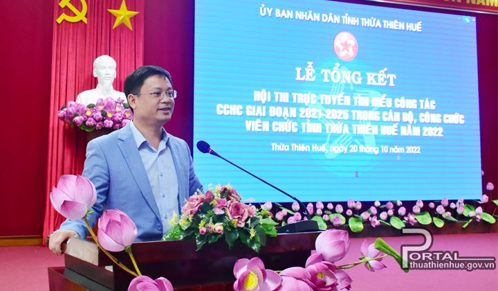 Sáng ngày 20/10, UBND tỉnh tổ chức lễ tổng kết Hội thi trực tuyến tìm hiểu công tác cải cách hành chính giai đoạn 2021 – 2025 trong cán bộ, công chức, viên chức tỉnh Thừa Thiên Huế năm 2022. Tham dự buổi lễ có UVTV Tỉnh ủy, Phó Chủ tịch Thường trực UBND tỉnh Nguyễn Thanh Bình.