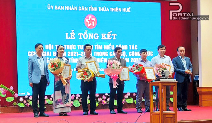 Kết quả có 09 đơn vị, địa phương được công nhận giải thưởng sáng kiến, trong đó có 05 đơn vị cấp sở, 02 đơn vị cấp huyện và 02 đơn vị cấp xã. Giải nhất sáng kiến Hội thi trực tuyến tìm hiểu công tác cải cách hành chính giai đoạn 2021 - 2025 trong cán bộ, công chức, viên chức tỉnh Thừa Thiên Huế năm 2022 thuộc về Văn phòng UBND tỉnh.