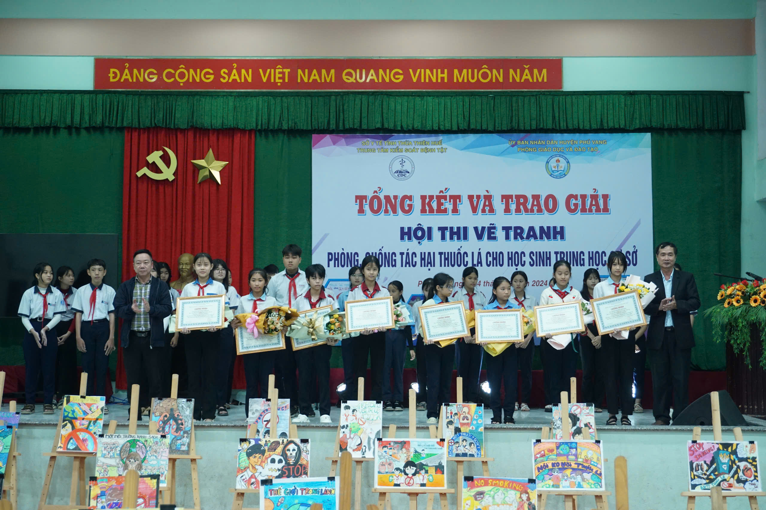 Tổng kết, trao giải Hội thi vẽ tranh Phòng, chống tác hại thuốc lá cho học sinh trung học cơ sở huyện Phú Vang năm 2024.