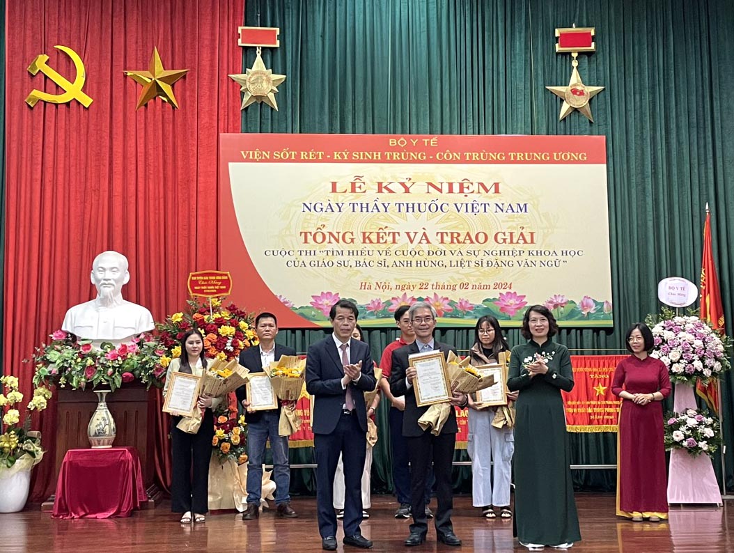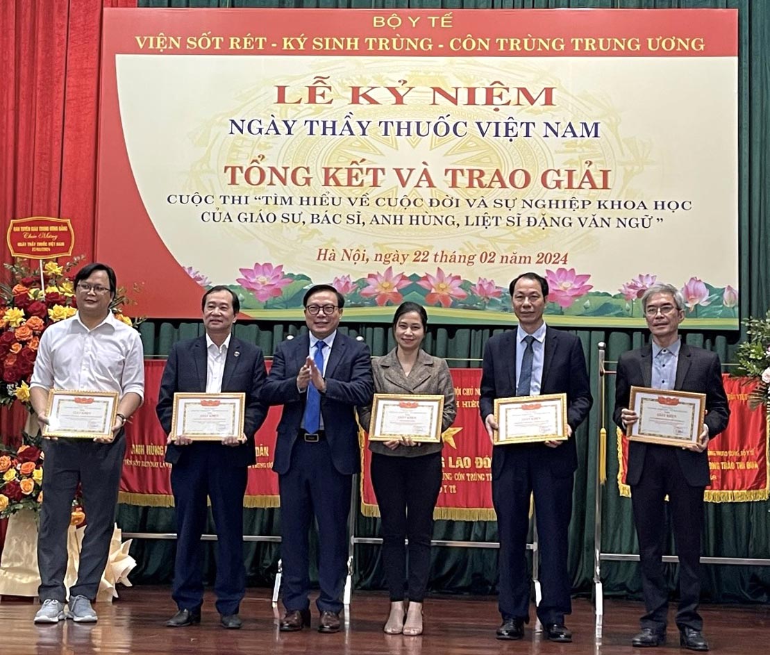 Sáng ngày 22.2.2024 tại Hội trường Đặng Văn Ngữ, Viện Sốt rét - Ký sinh trùng - Côn trùng, Bộ Y tế diễn ra Lễ Kỷ niệm Ngày Thầy thuốc Việt Nam 27/2; Tổng kết và trao giải cuộc thi "Tìm hiểu về cuộc đời và sự nghiệp khoa học của Giáo sư - Bác sĩ - Anh hùng - Liệt sĩ Đặng Văn Ngữ”. Ban Tổ chức cuộc thi đã tặng Giấy khen cho 5 đơn vị và 15 cá nhân đạt các giải, trong đó Trung tâm Kiểm soát bệnh tật Thừa Thiên Huế nhận được Giấy khen và một cá nhân đạt giải.