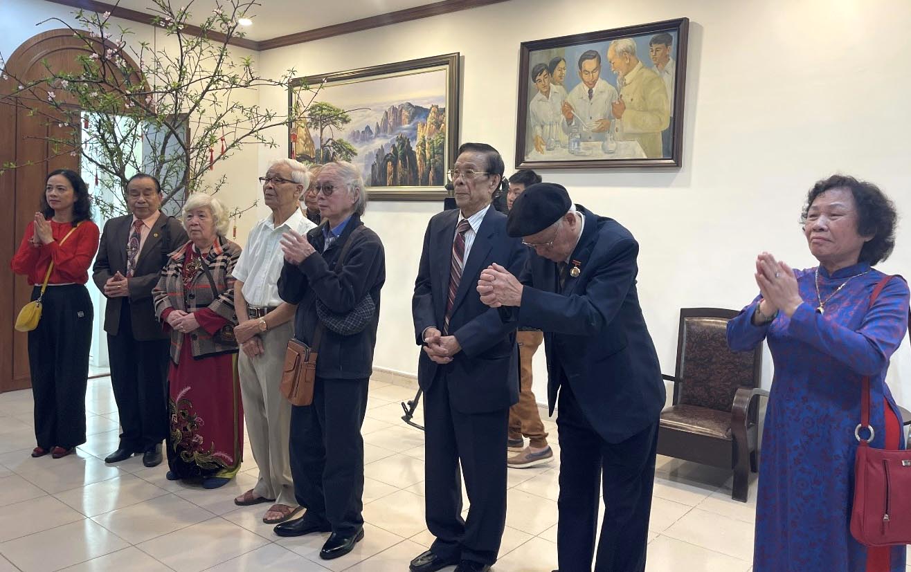 Các cán bộ lão thành cùng công tác và gia đình NSND Đặng Nhật Minh dâng hương tưởng niệm GS, BS, AH, LS Đặng Văn Ngữ tại Nhà lưu niệm Đặng Văn Ngữ ở Viện SR-KST-CT Trung ương.