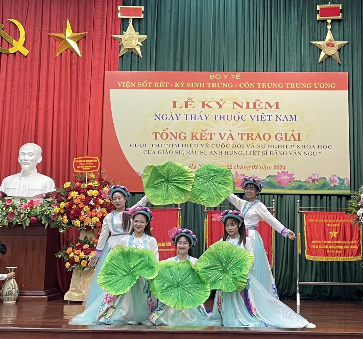 Văn nghệ chào mừng của viên chức Viện SR-KST-CT Trung ương và y sinh Trường Cao đẳng Y tế Đặng Văn Ngữ trình diễn.