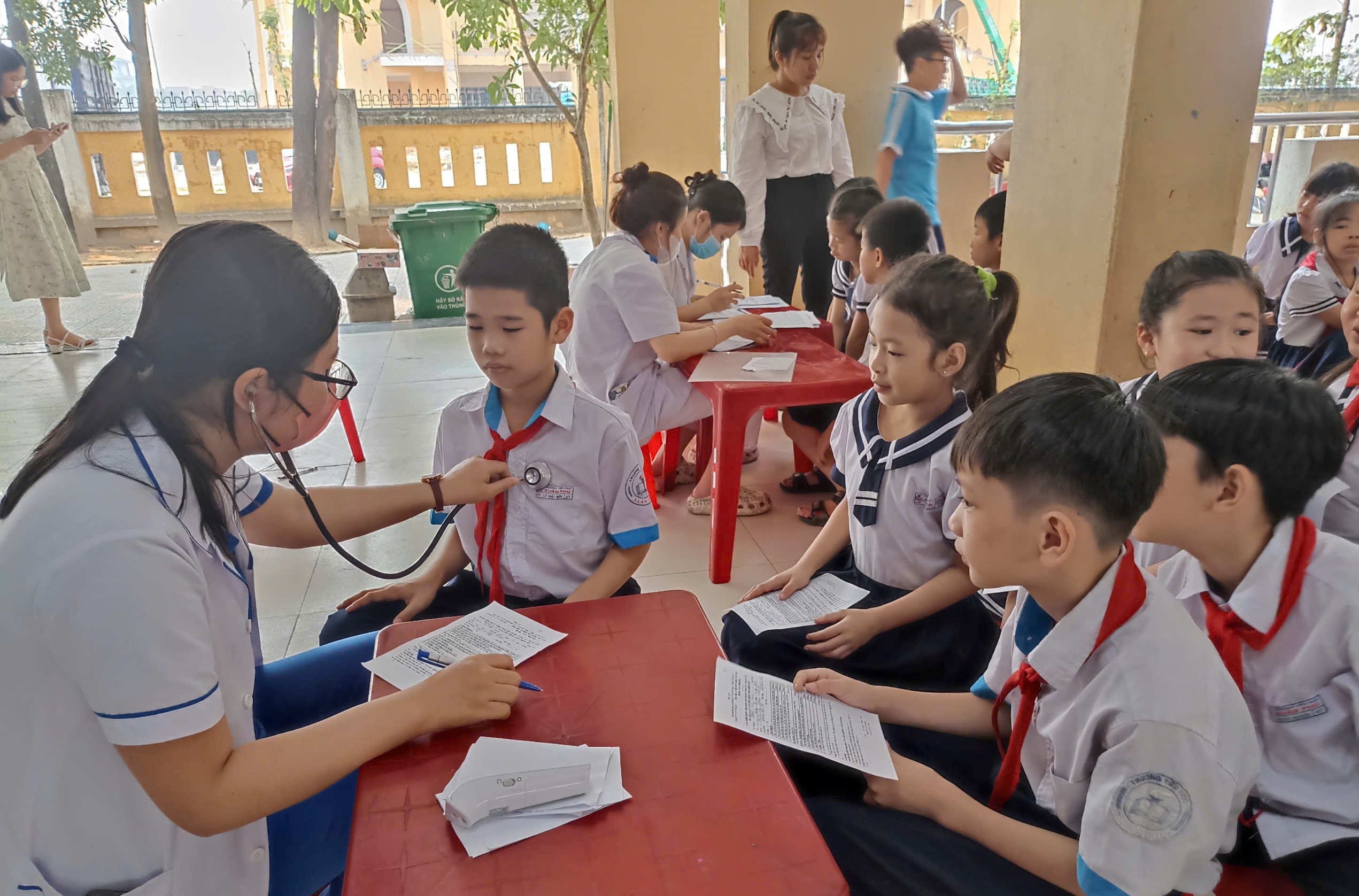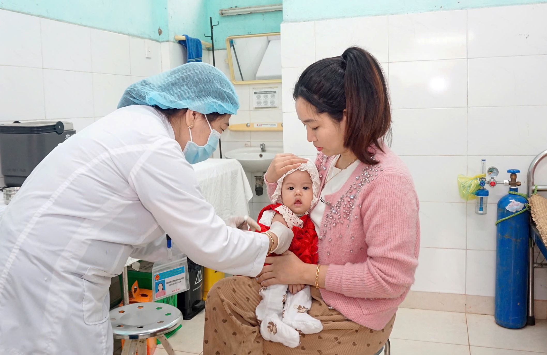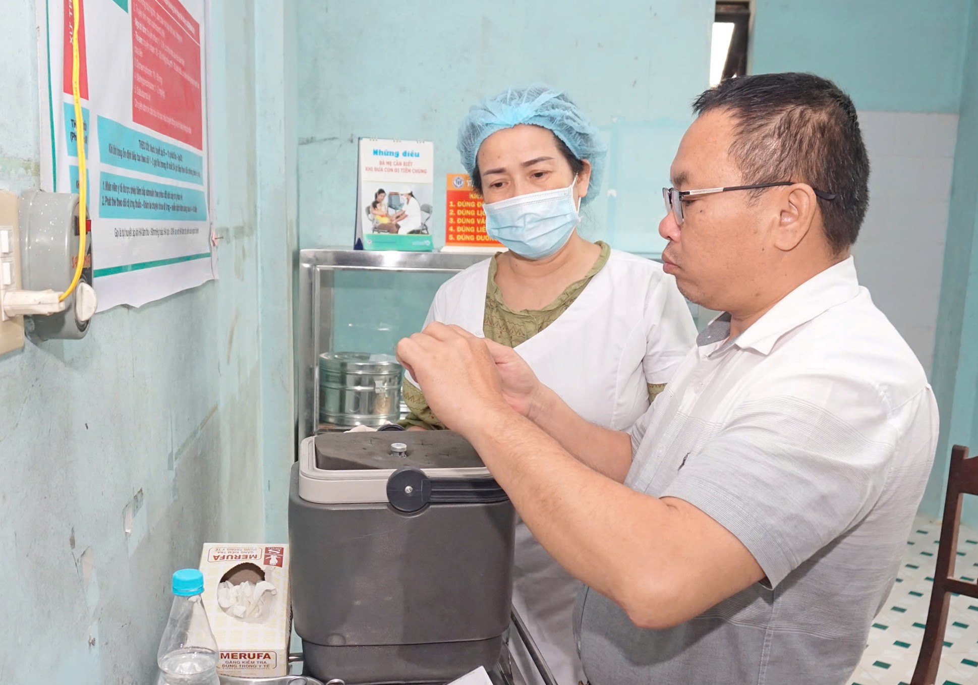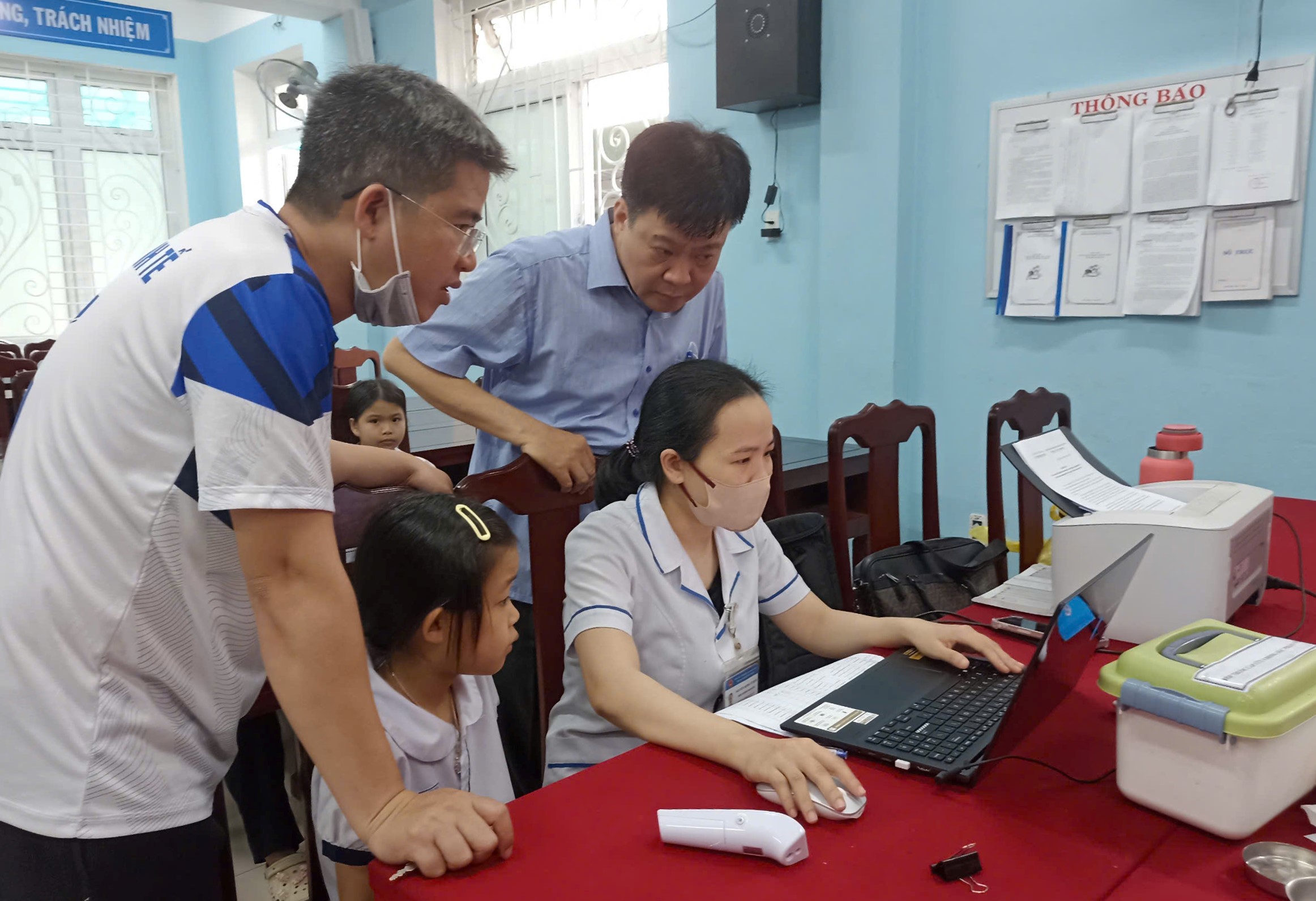 ThS. BS Hồ Xuân Vũ - Phó Giám đốc CDC Huế kiểm tra tiến độ chiến dịch tiêm phòng Sởi tại quận Thuận Hóa.