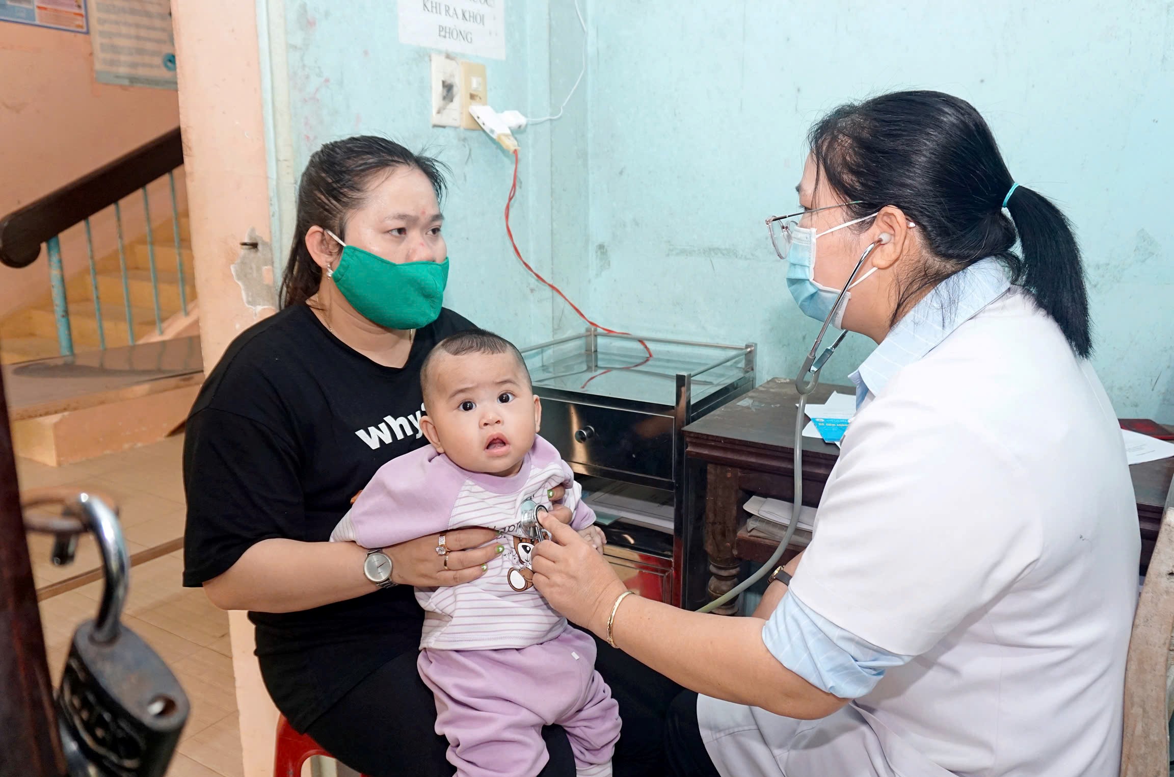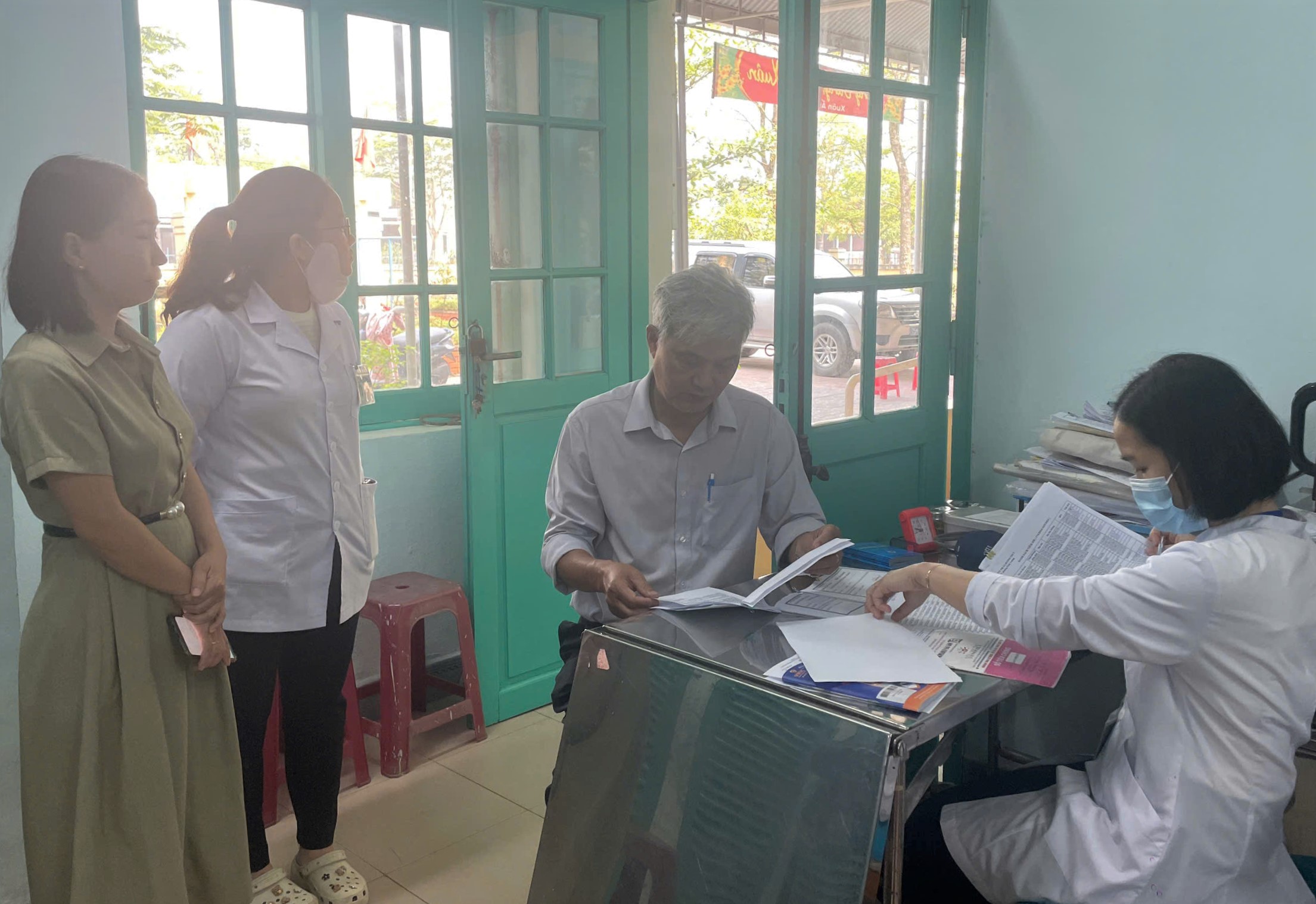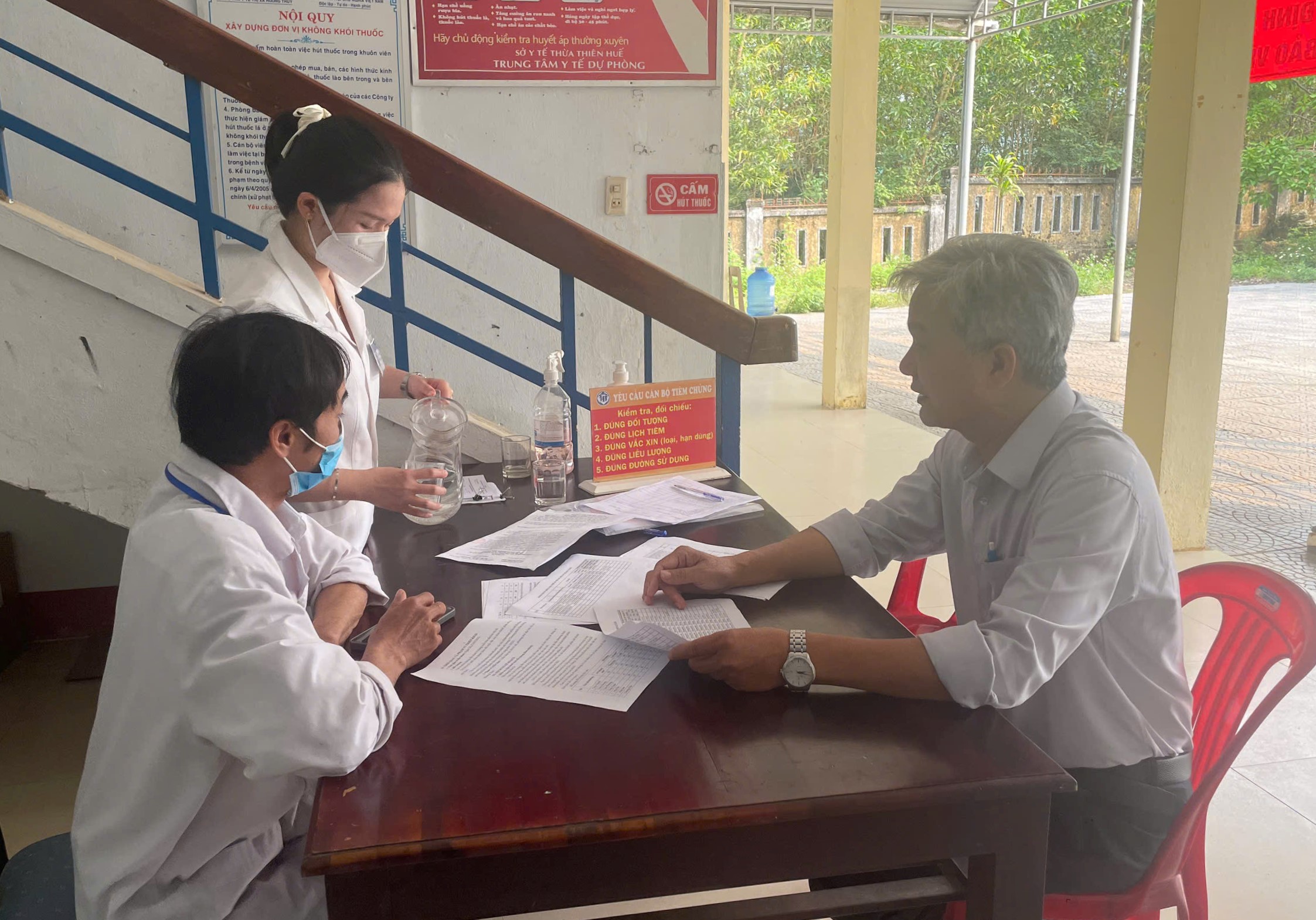 BSCKII Nguyễn Lê Tâm - Phó Giám đốc phụ trách CDC Huế cùng Đoàn kiểm tra/giám sát thúc đẩy tiến độ chiến dịch tiêm phòng Sởi tại quận Phú Xuân.