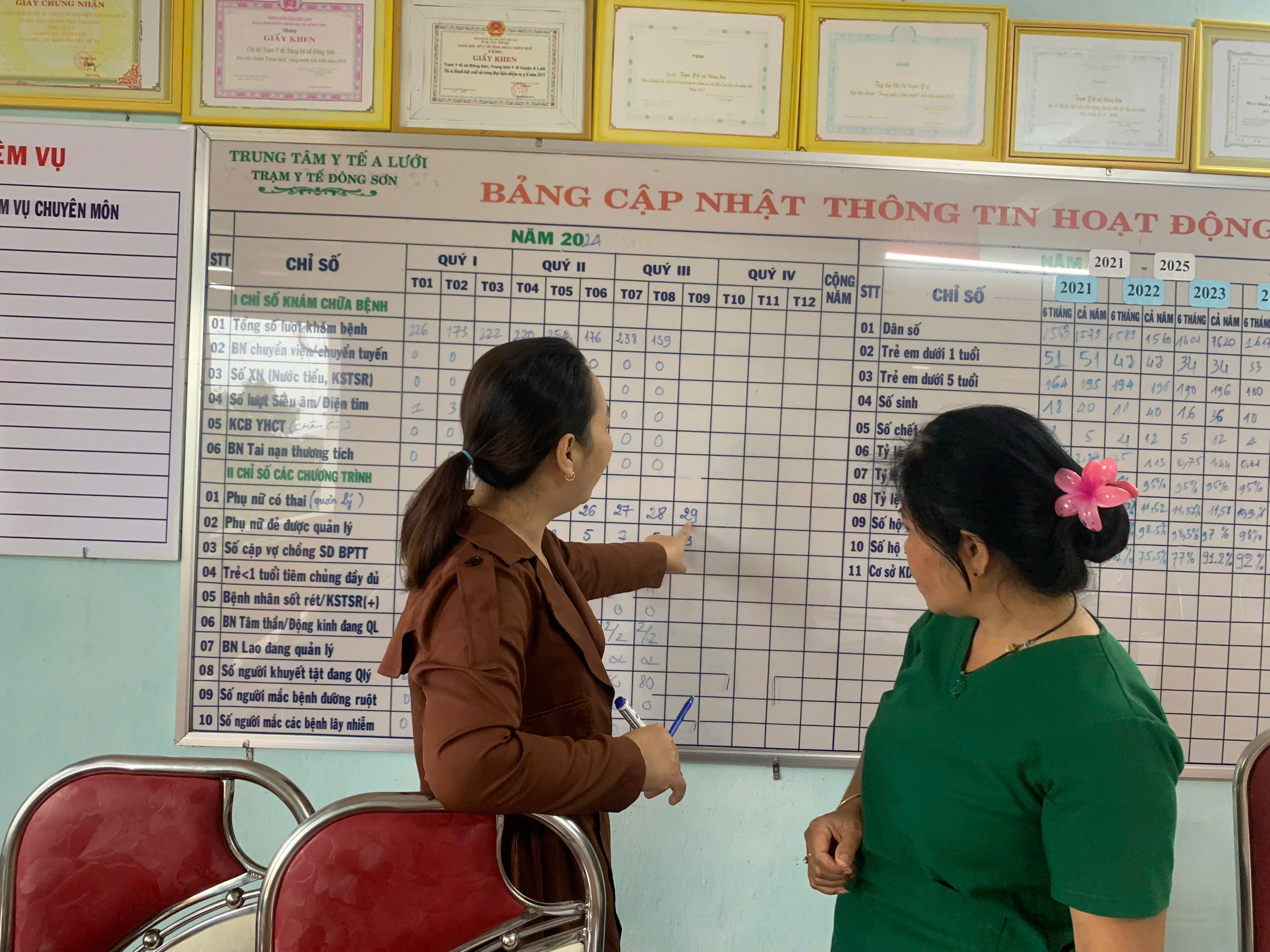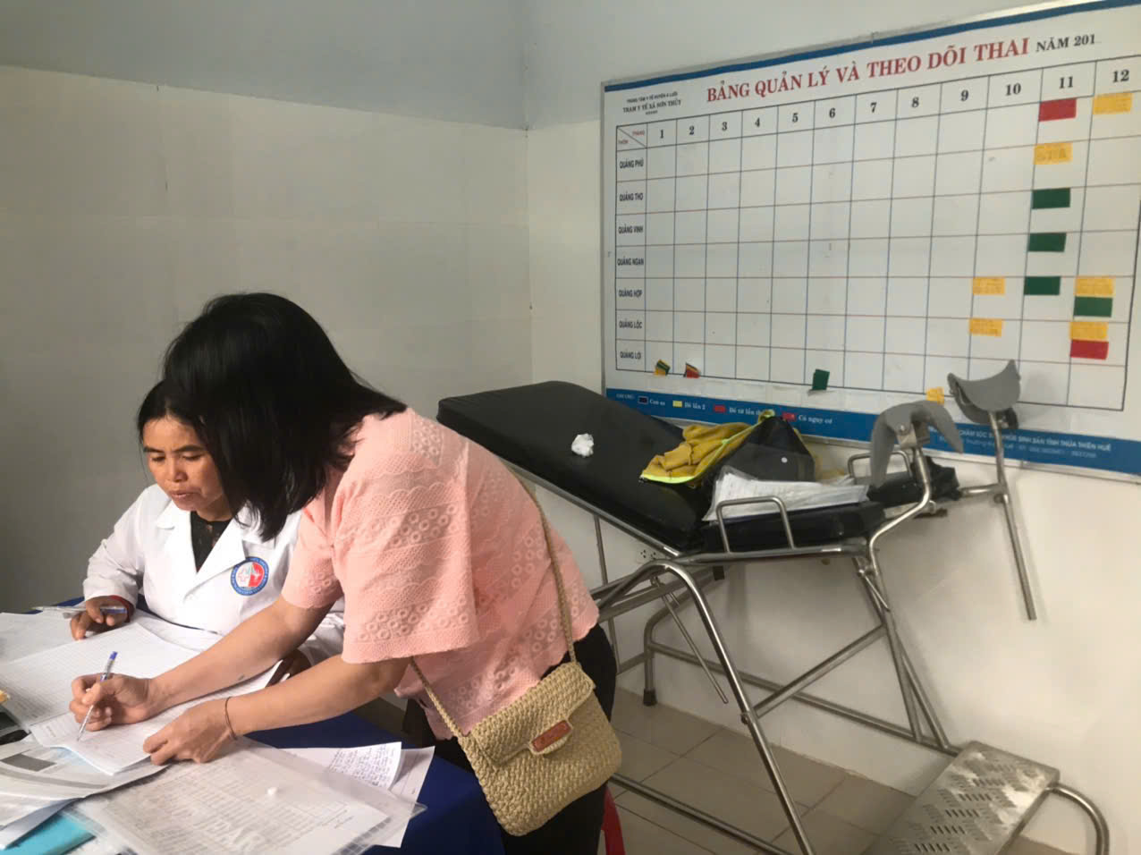 Tại các trạm y tế, Đoàn ghi nhận trạm y tế có xây dựng kế hoạch triển khai công tác Phòng chống tai biến sản khoa trong mùa mưa bão, có lập danh sách bà mẹ mang thai có nguy cơ và có ngày sinh dự kiến trong những tháng mưa bão để theo dõi và quản lý; có triển khai cấp phát Sổ theo dõi SKBMTE tại trạm; có thực hiện ghi chép sổ sách theo hướng dẫn và báo cáo số liệu thống kê theo phần mềm thông tư 37 theo qui định…Tuy nhiên, bên cạnh những kết quả đã đạt được thì trong đó có một số vấn đề cần cải thiện, đó là: Cập nhật bà mẹ mang thai vào bảng quản lý thai sản đầy đủ hơn; điều chỉnh các số liệu báo cáo của trạm y tế cho phù hợp và theo đúng hướng dẫn; bổ sung ghi chép đầy đủ các thông tin khách hàng vào một số ô cột trong biểu mẫu sổ ghi chép mà đoàn giám sát đã góp ý.