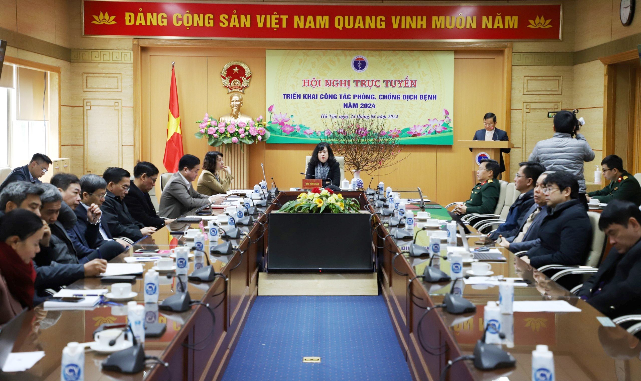 Sáng ngày 24/01/2024, Bộ Y tế đã tổ chức hội nghị trực tuyến triển khai công tác phòng, chống dịch bệnh năm 2024. Tham dự khai mạc và chỉ đạo hội nghị có đồng chí Đào Hồng Lan - Ủy viên Trung ương Đảng - Bộ trưởng Bộ Y tế. Chủ trì tham dự tại điểm cầu trực tuyến tỉnh Thừa Thiên Huế có ThS.BS.CKII Hoàng Trọng Quý - Phó Giám đốc Sở Y tế; đại diện lãnh đạo Phòng Nghiệp vụ Y; Trung tâm Kiểm soát Bệnh tật tỉnh và Trung tâm Y tế các huyện, thị xã, thành phố Huế.