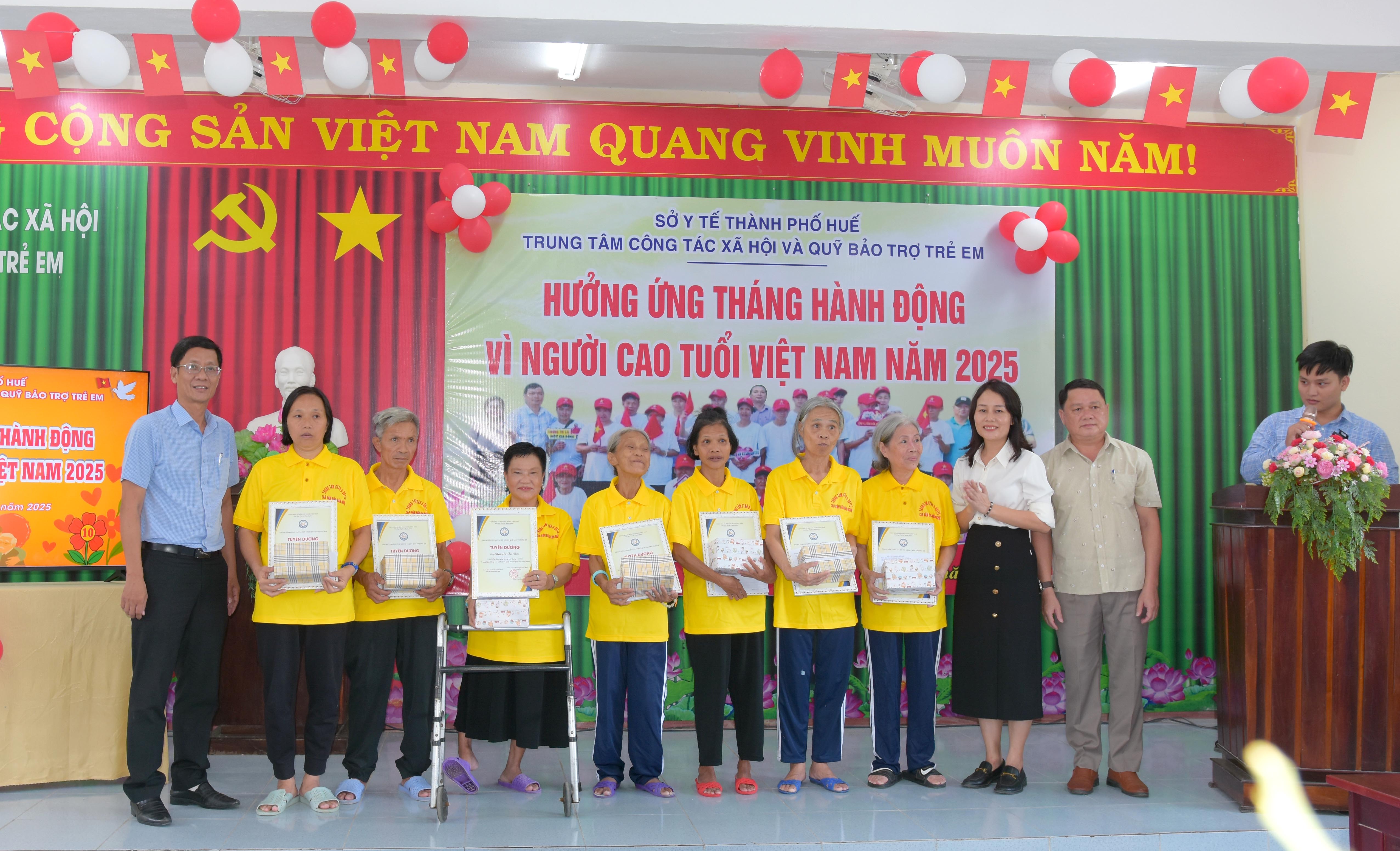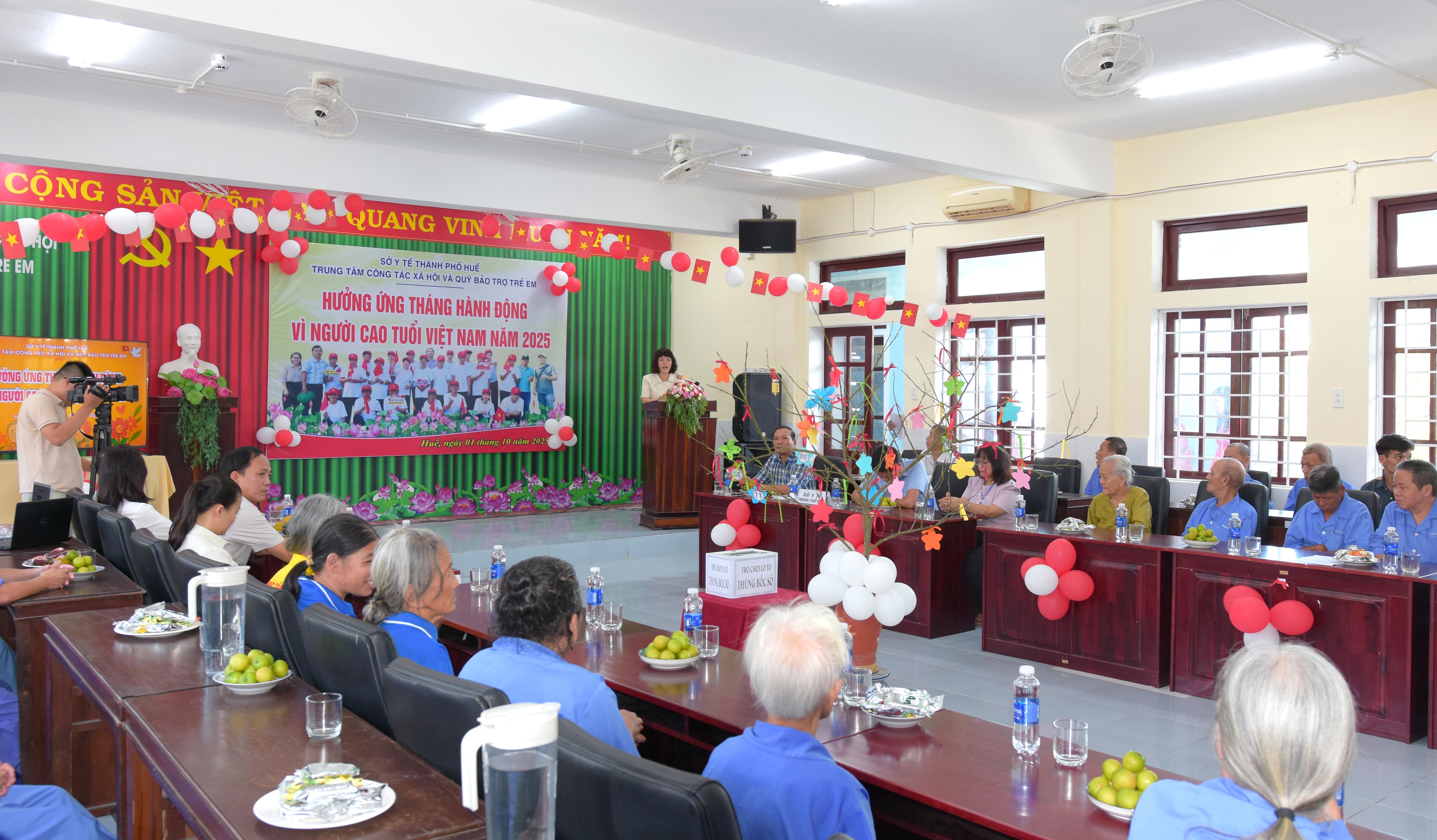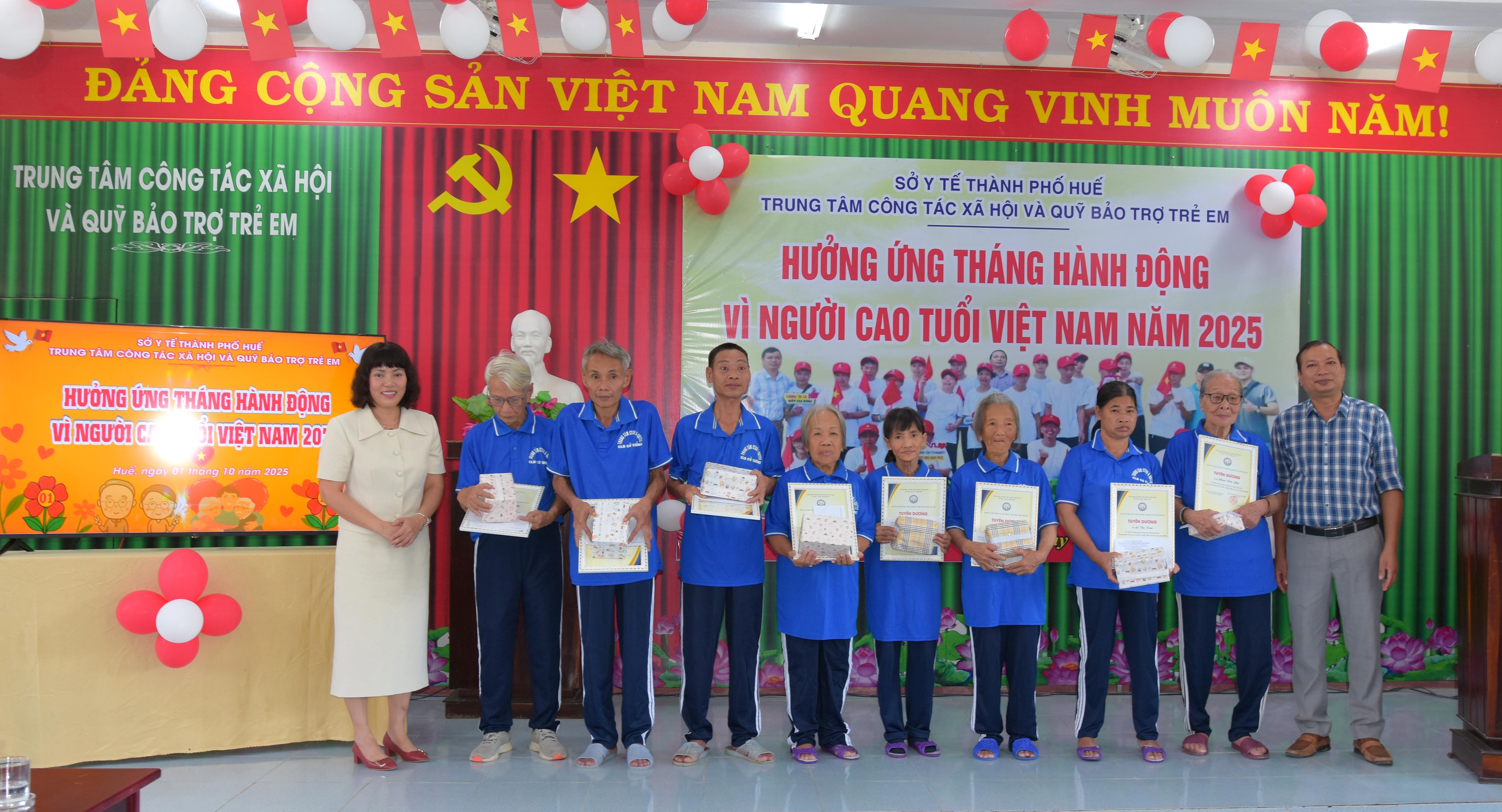Hưởng ứng “Tháng Hành động vì Người Cao tuổi Việt Nam” và “Ngày Quốc tế Người Cao tuổi”, chiều ngày 01/10 Trung tâm Công tác xã hội và Quỹ Bảo trợ trẻ em (CTXH&QBTTE) Sở Y tế thành phố Huế tổ chức Chương trình giao lưu, tuyên dương Người cao tuổi đang được nuôi dưỡng, chăm sóc tại Trung tâm.