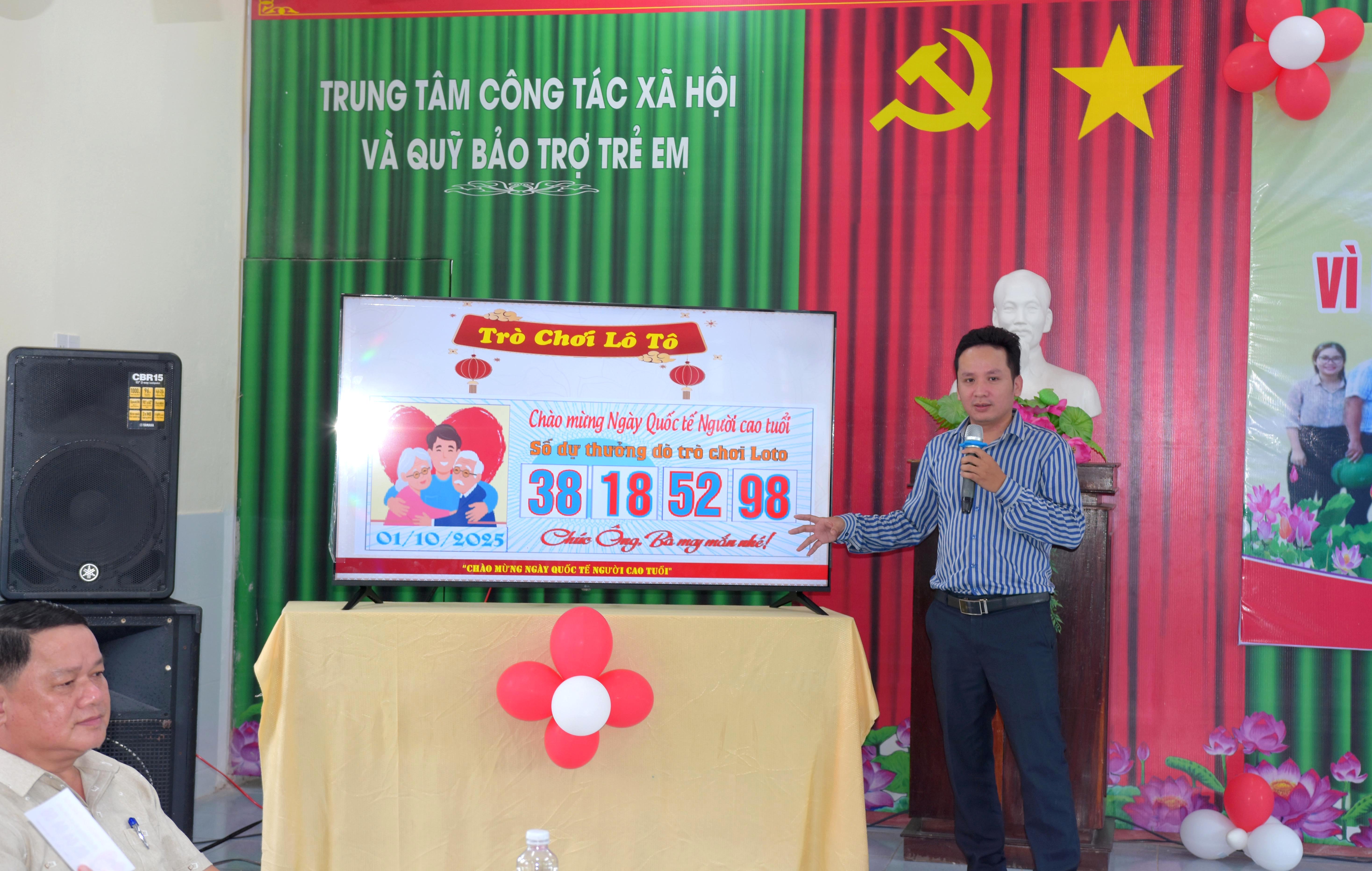 Hưởng ứng “Tháng Hành động vì Người Cao tuổi Việt Nam” năm 2025 và phát huy truyền thống, nét văn hóa, đạo lý “Kính lão, Đắc thọ”, Trung tâm đã tổ chức những hoạt động thiết thực có ý nghĩa nhằm tạo điều kiện cho Người cao tuổi cùng chia sẻ, sống vui, sống khoẻ, lành mạnh trong vòng tay yêu thương của cộng đồng. Dịp này, Trung tâm đã tuyên dương 15 Người cao tuổi có nhiều “Đóng góp xây dựng Mái ấm Trung tâm Công tác xã hội và Quỹ Bảo trợ trẻ em năm 2025” và tổ chức giao lưu văn nghệ, hái hoa dân chủ, xổ số lô tô và tặng cho các cụ, các ông/bà những món quà đầy niềm vui và nhiều ý nghĩa.