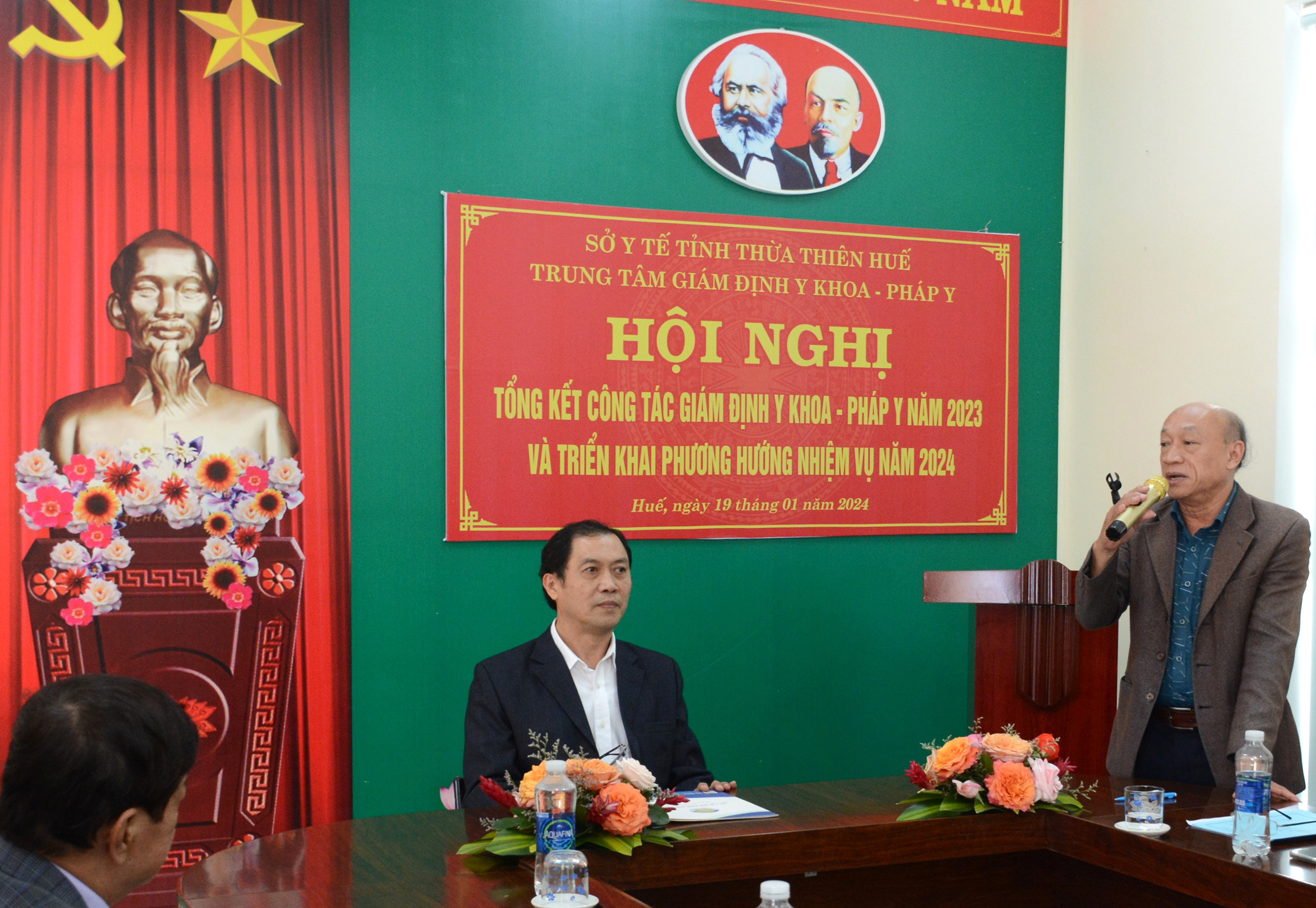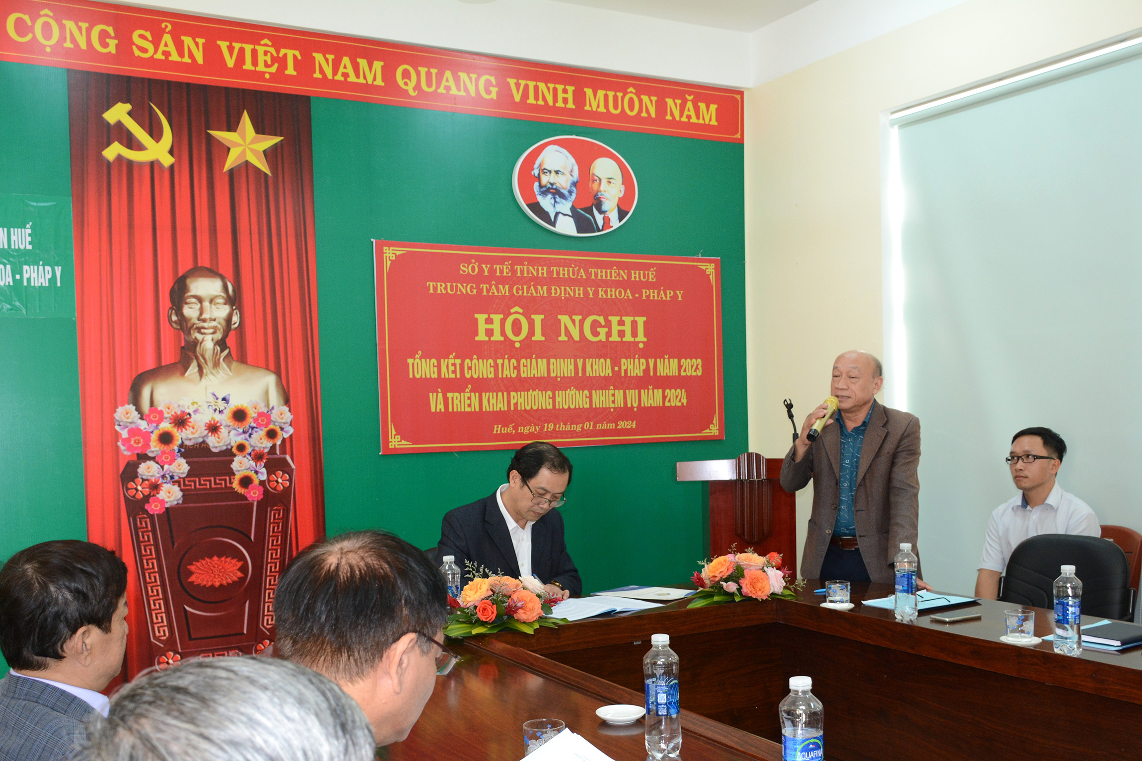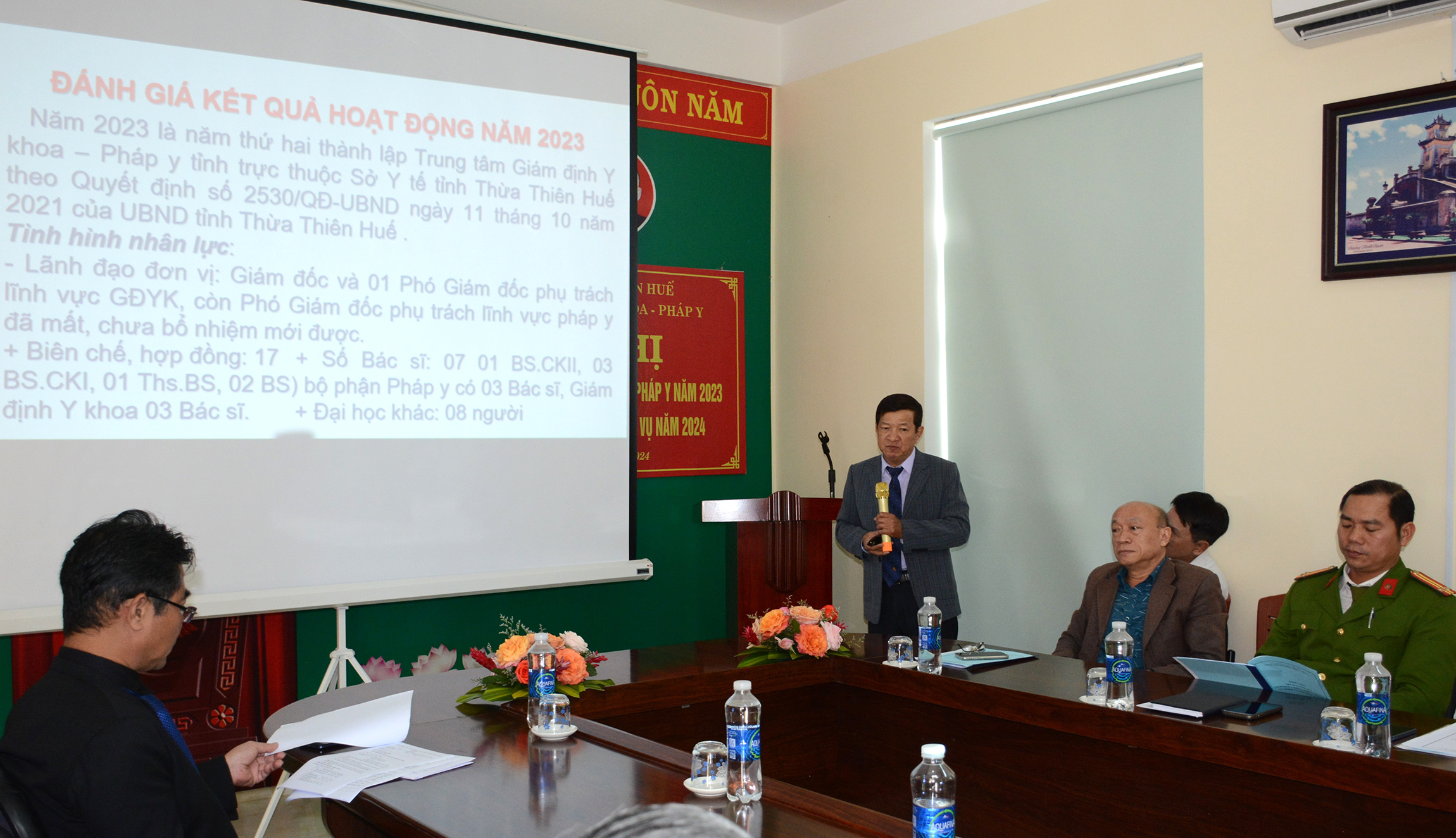 BSCKII Ngô Viết Sĩ – Giám đốc Trung tâm GĐYK-PY báo cáo kết quả công tác Giám định Y khoa và Pháp y năm 2023 và triển khai nhiệm vụ năm 2024.