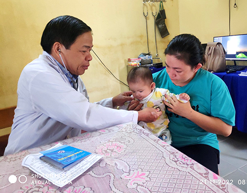 Khám sàng lọc và thực hiện tiêm chủng cho trẻ tại TYT Điền Lộc, huyện Phong Điền