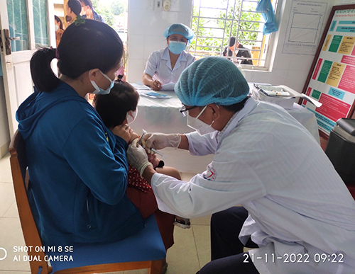 Các Trạm Y tế xã đồng loạt tổ chức tiêm ngừa cho trẻ các mũi Lao, 5 trong 1, IPV, SII, viêm não Nhật Bản.... Hiện tại vắc xin DPT, MR vẫn còn thiếu hụt để tiêm cho trẻ. Để đạt kết quả tốt, cán bộ của các Trạm Y tế và cộng tác viên y tế đã tiến hành rà soát các đối tượng trong diện TCMR để thông báo cho các gia đình đưa trẻ đến các cơ sở y tế để được tiêm chủng đầy đủ các mũi nhằm phòng tránh các bệnh truyền nhiễm nguy hiểm theo lịch đúng định kỳ. Kết quả tại các điểm tiêm chủng ở trạm Y tế an toàn, chưa xuất hiện trường hợp nào có sốc phản vệ hay phản ứng nặng sau tiêm.