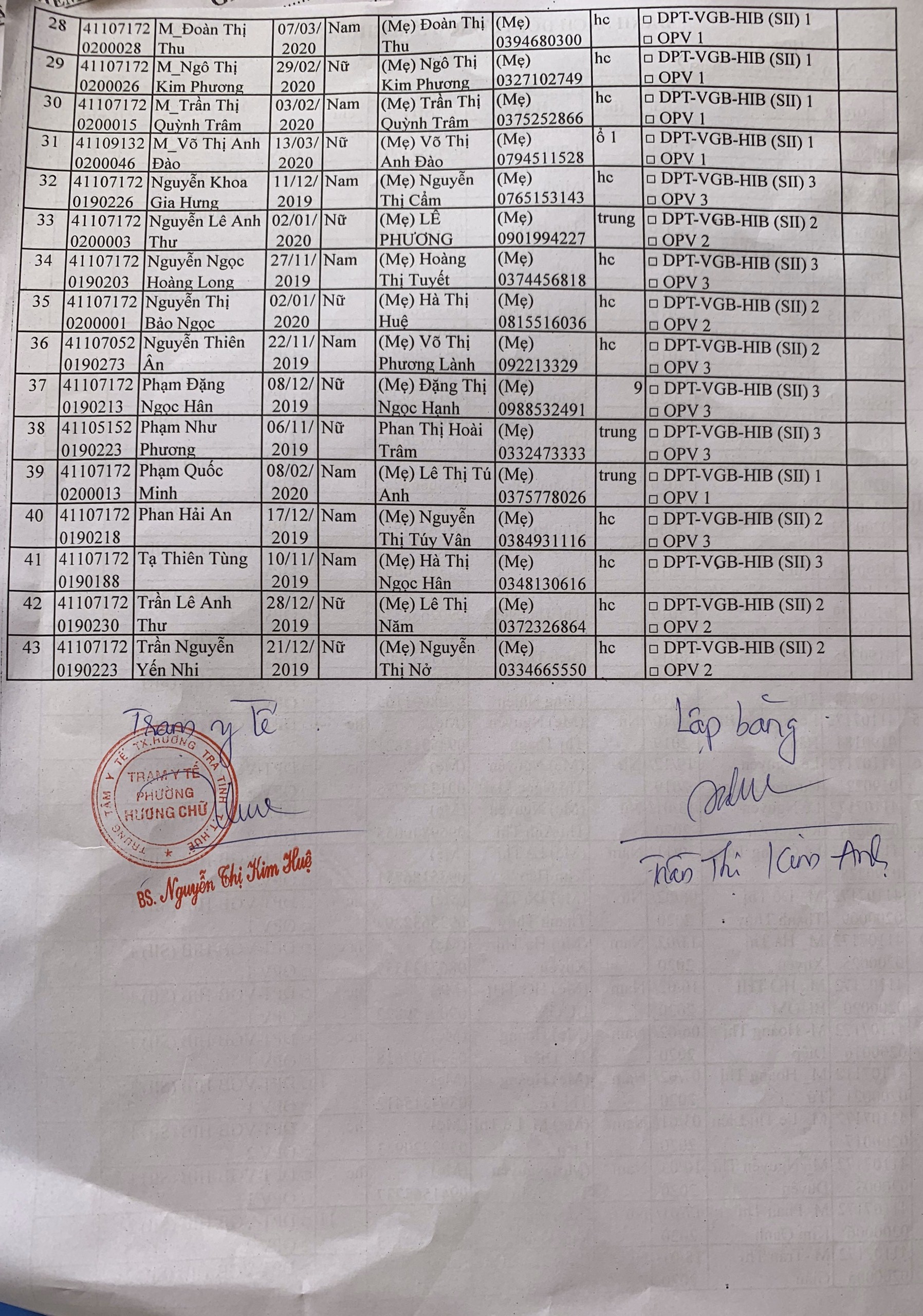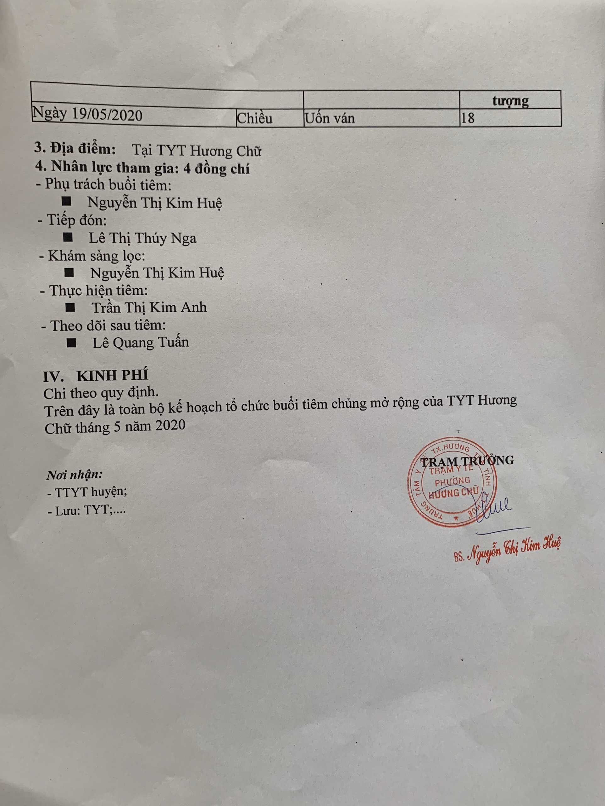 Để công tác tiêm chủng được tiếp tục an toàn và hiệu quả, Trung tâm Kiểm soát bênh tật kiến nghị TTYT TX Hương Trà tiếp tục tăng cường kiểm tra giám sát thường xuyên trong các buổi tiêm chủng tại các trạm y tế xã phường.