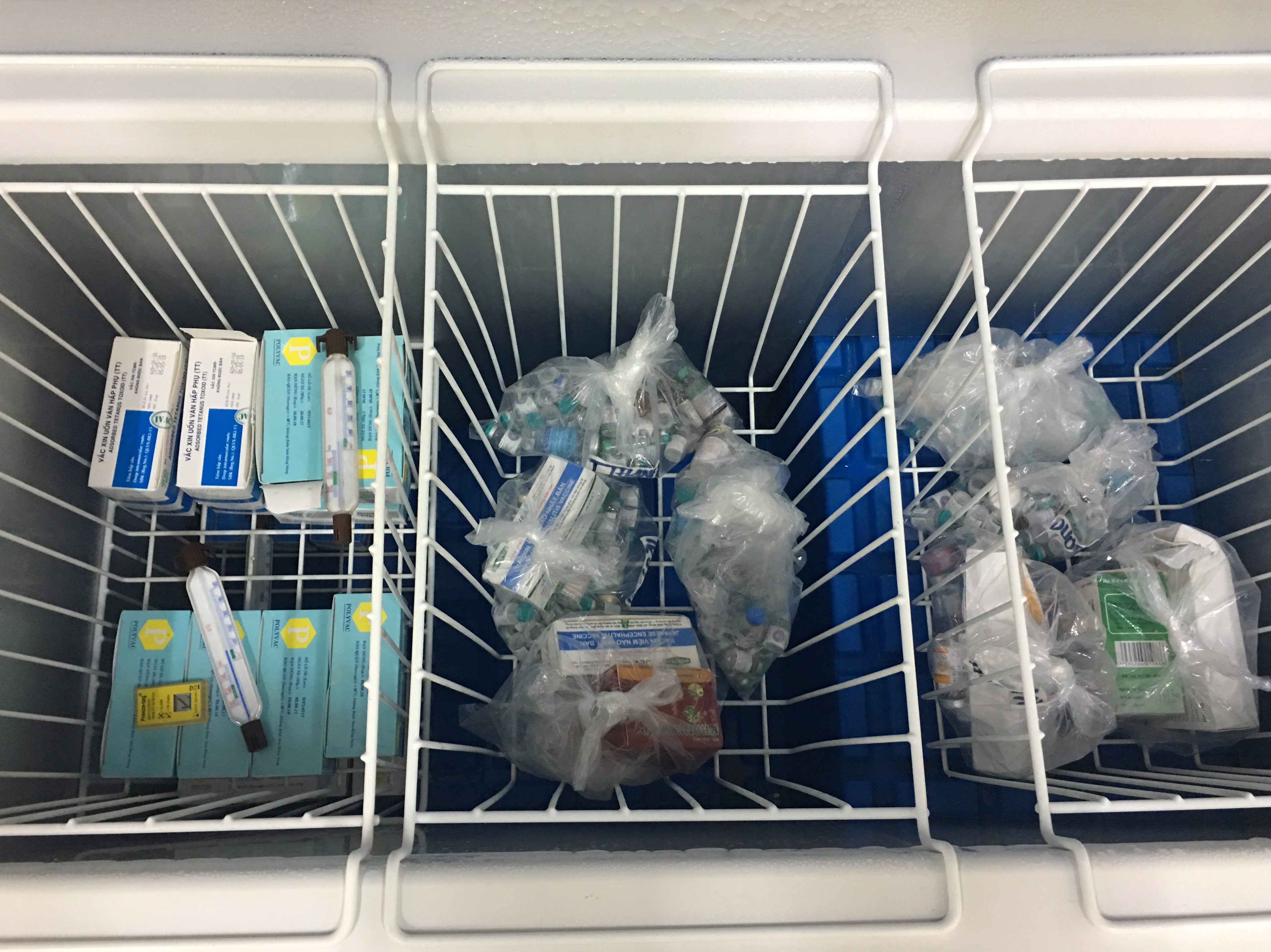 Về công tác tiêm chủng mở rộng tại 2 TTYT việc quản lý vắc xin, vật tư, bảo quản vắc xin, vật tư tiêm chủng thực hiện đúng theo quy định của chương trình. Số lượng vắc xin hiện có tại kho huyện đúng với số lượng báo cáo. Thực hiện tốt việc xuất, nhập vắc xin, vật tư, mũi tiêm cho từng đối tượng trên phần nềm.