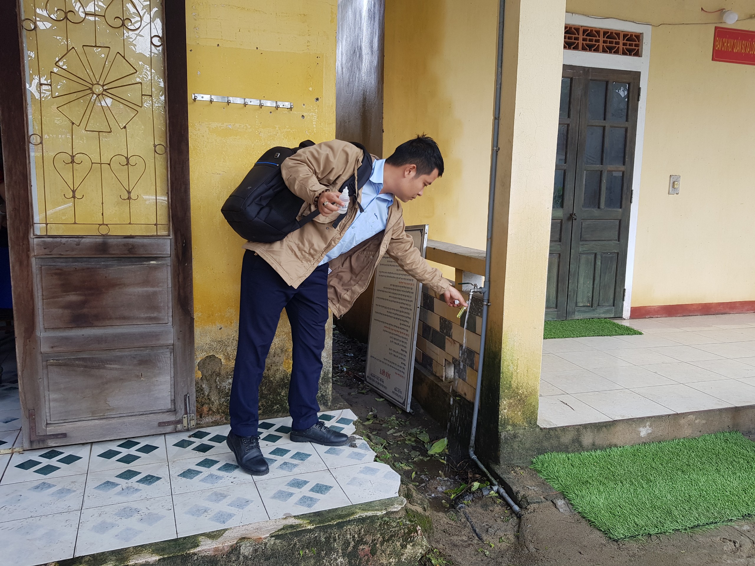 Cán bộ HueWACO lấy mẫu tại UBND xã Lộc Tiến, huyện Phú Lộc